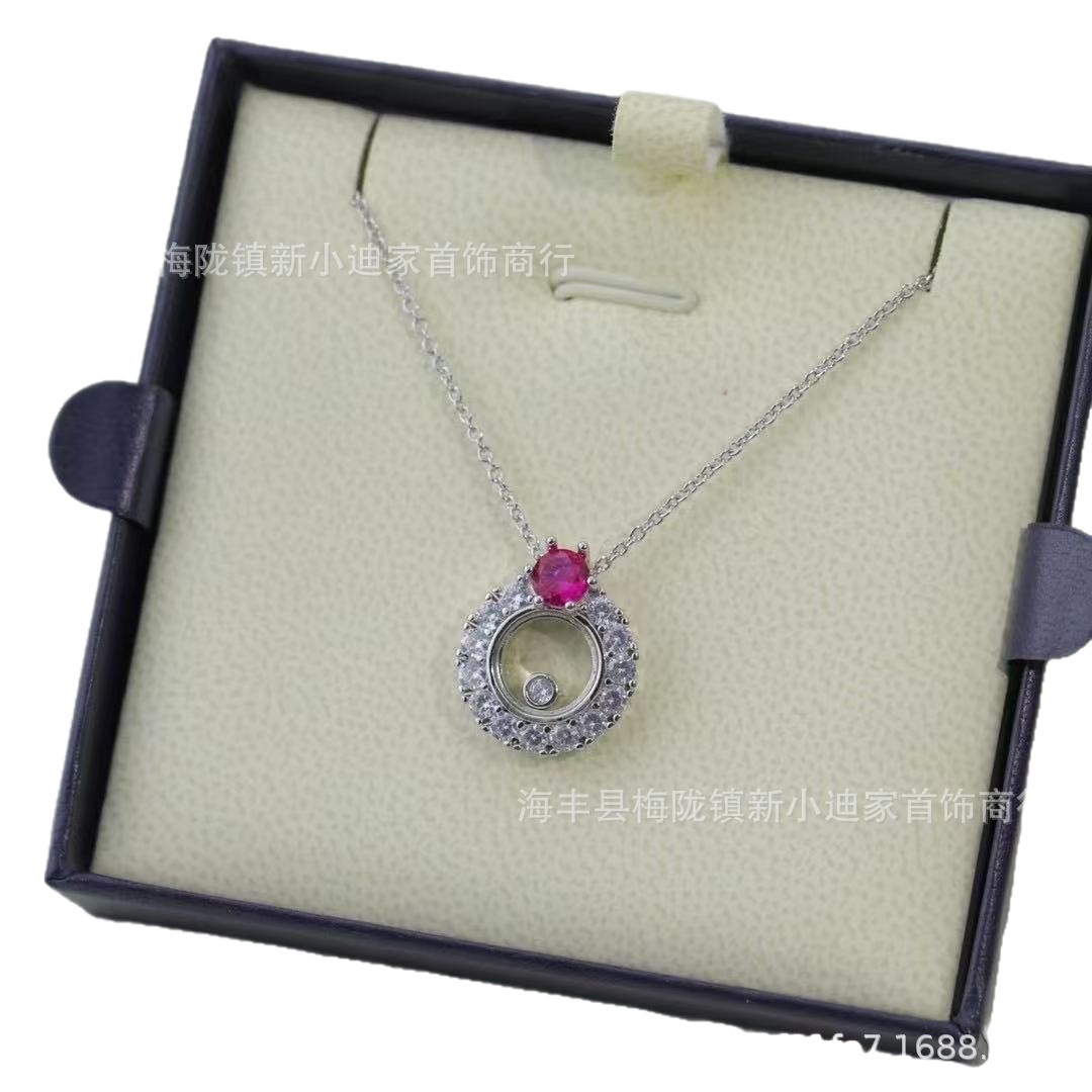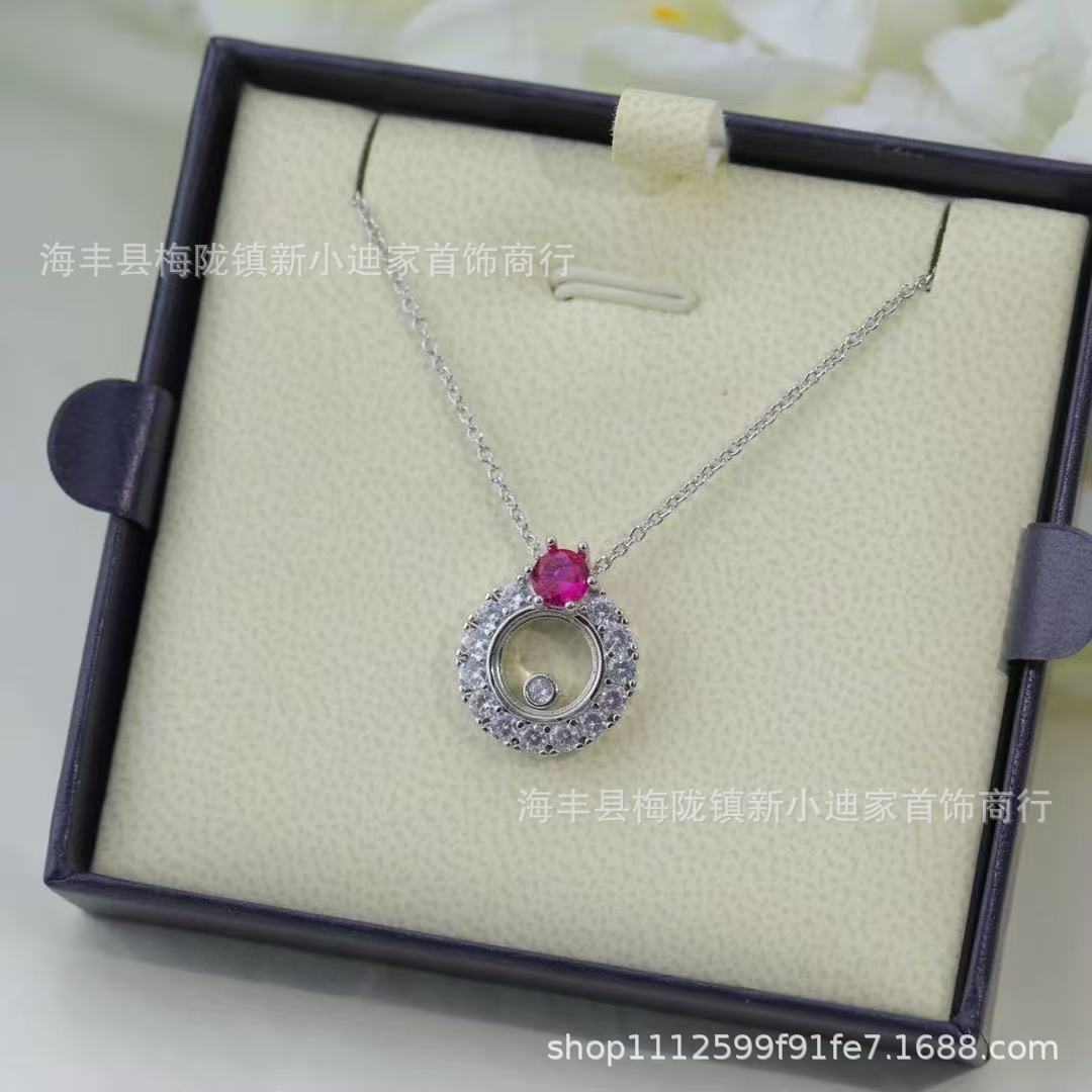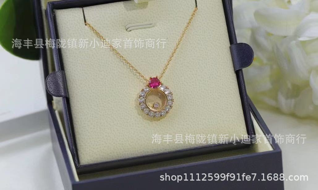 V Gold High Version Chopard Happy Diamond Ruby Single Diamond Rotating Necklace Women's Versatile High-End Clavicle Chain Set