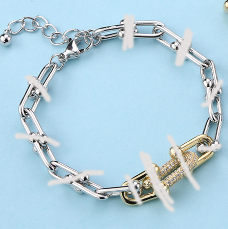 Color: Silver chain large single u diamond two-color bracelet