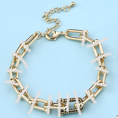 Color: Gold single u inlaid black diamond horseshoe buckle bracelet
