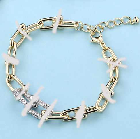 Gold chain large single u diamond two-color bracelet