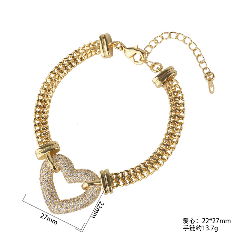 Korean Ins Style Cool European and American Fashion Stylish Stacked Thick Chain Set Hip-Hop Elegant Golden Heart-Shaped Necklace