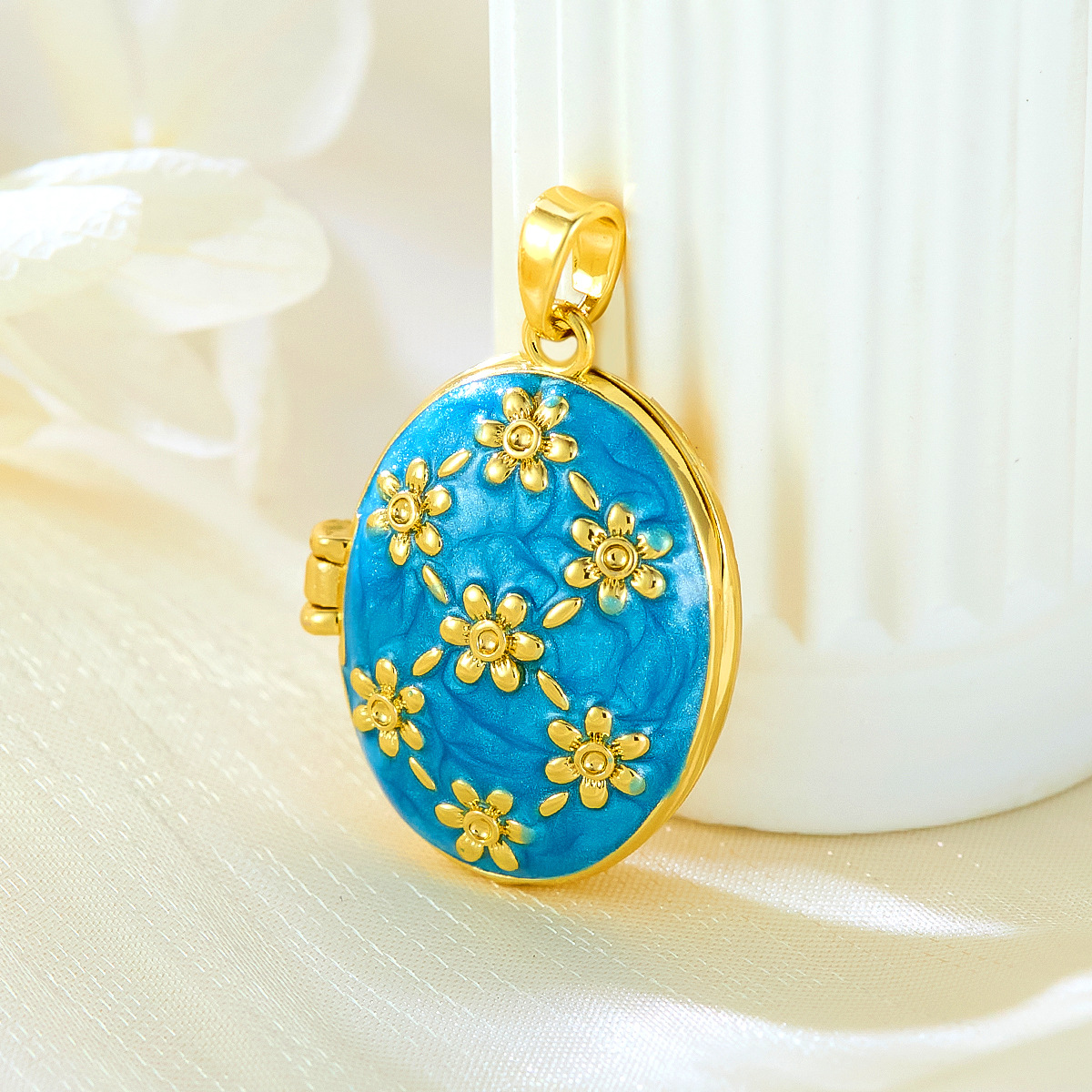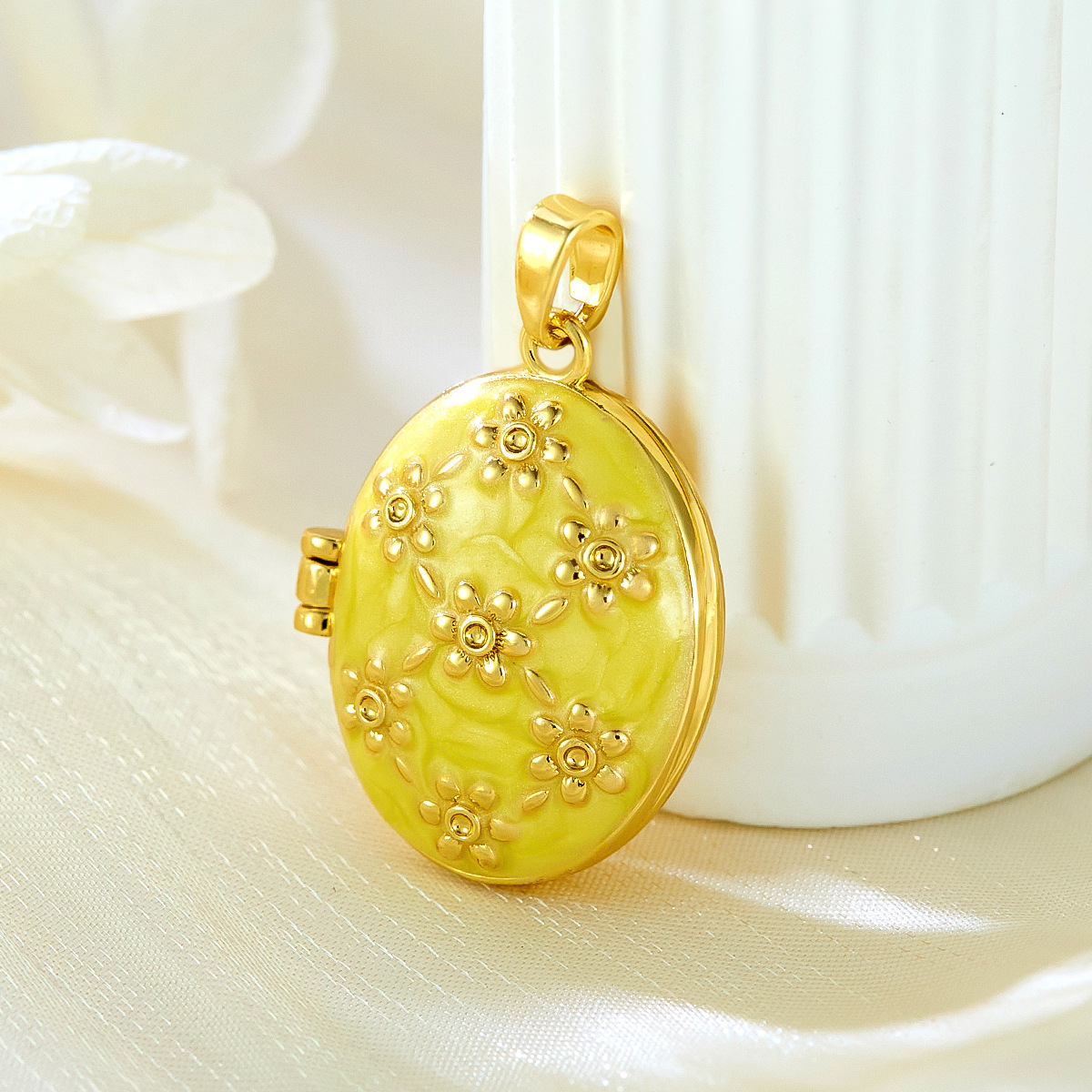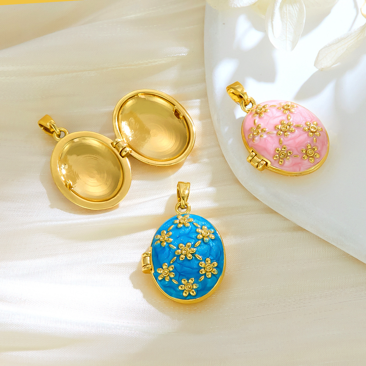 European and American Cross-Border Niche Design High-End Creative Fashion Colorful Oil Drop Photo Box Copper Gold-Plated Necklace Pendant for Women