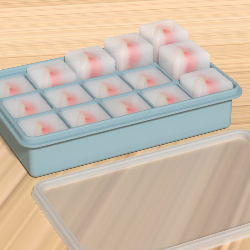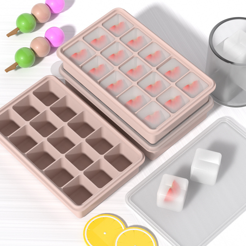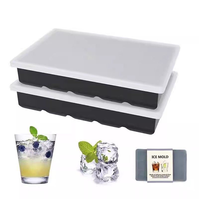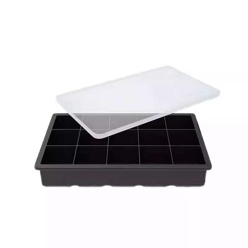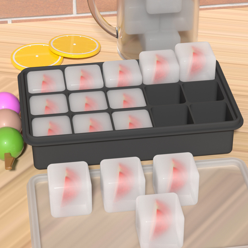 Food-Grade Platinum Silicone 15-Grids Square Ice Tray Mold Commercial-Grade Ice Storage Box with High Temperature Resistance and Anti-Freeze Cracking