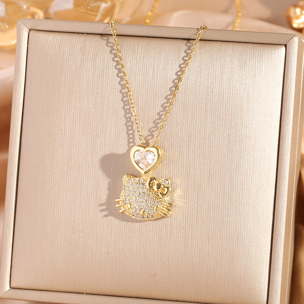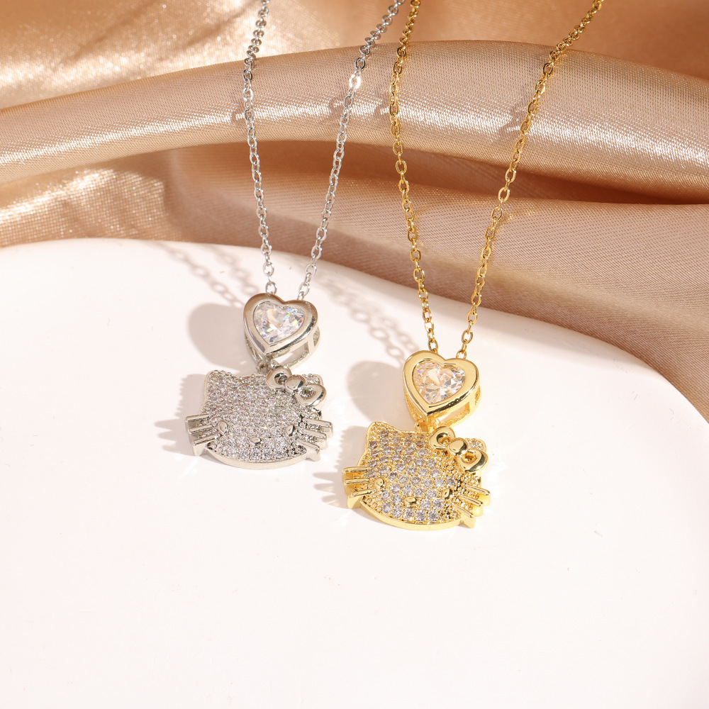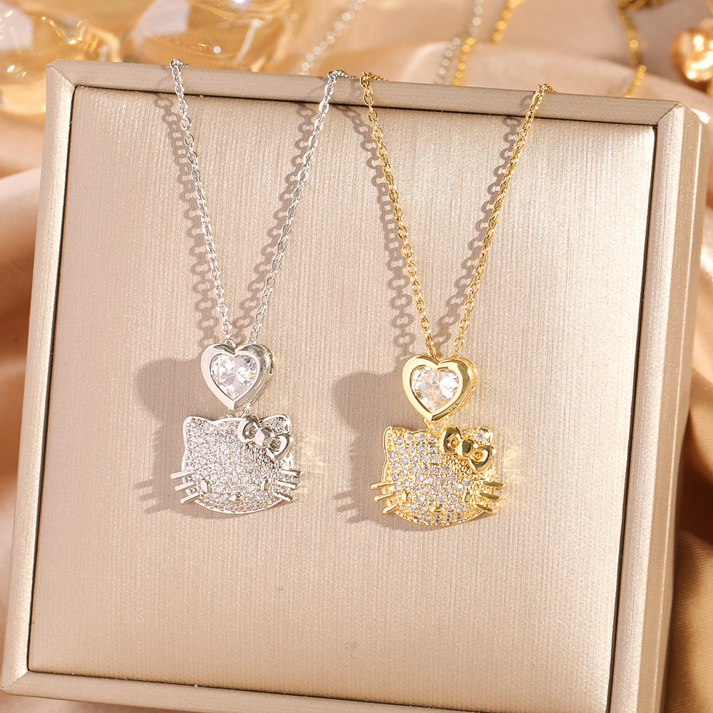 Cross-Border Heart Kt Cat Accessible Luxury Elegant Gorgeous Full Diamond Titanium Steel Necklace Women's Versatile Clavicle Chain Fashion Jewelry