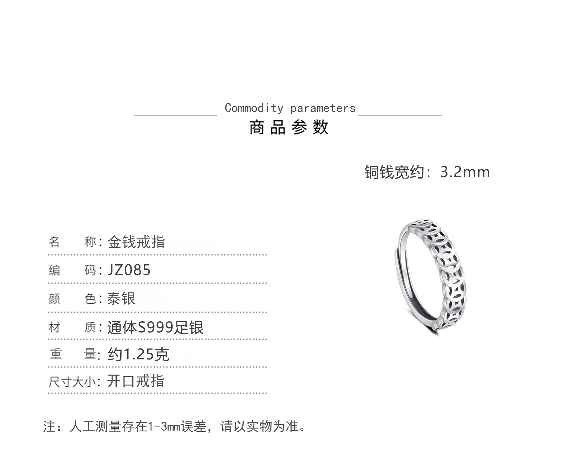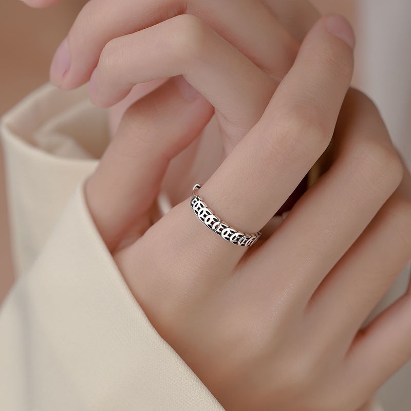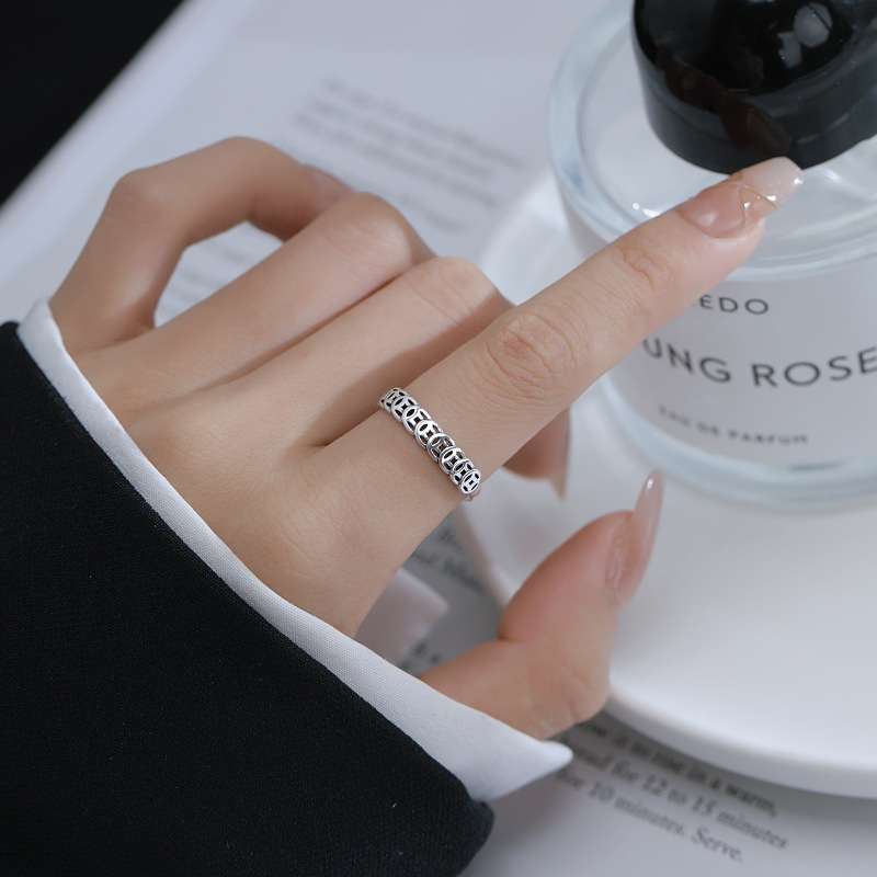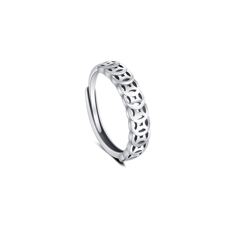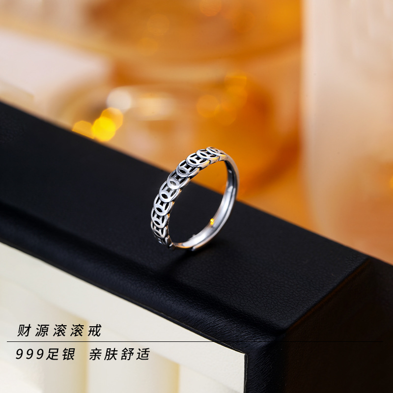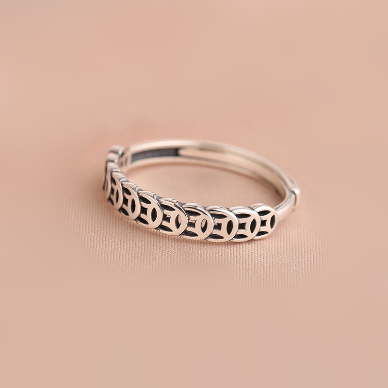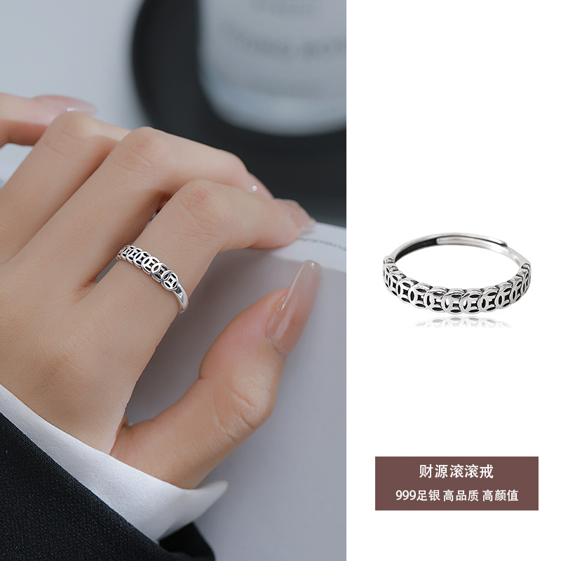 S999 Pure Silver Vintage Copper Coin Ring for Women, Unique Fortune-Attracting Coin, Simple Niche Open Ring Wholesale