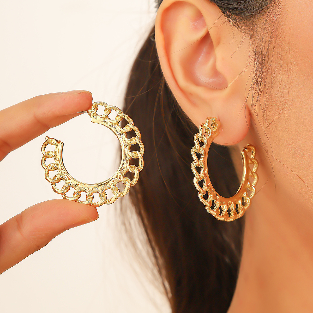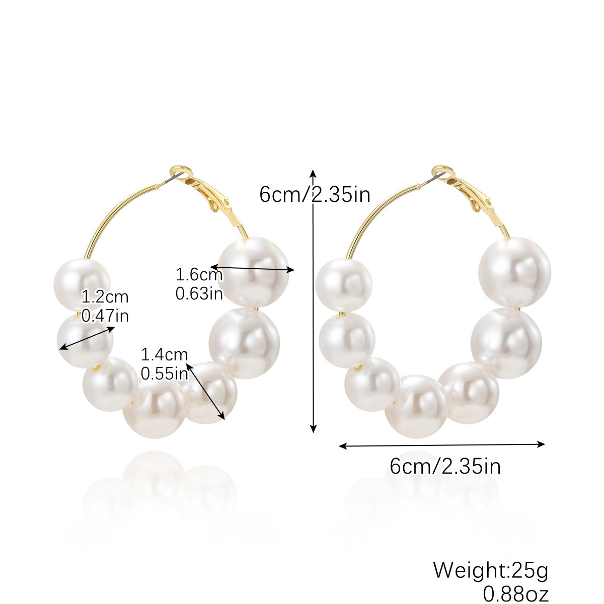 欧美跨境新款耳环夸张几何高级感珍珠金属耳圈 复古串珠圆圈耳环