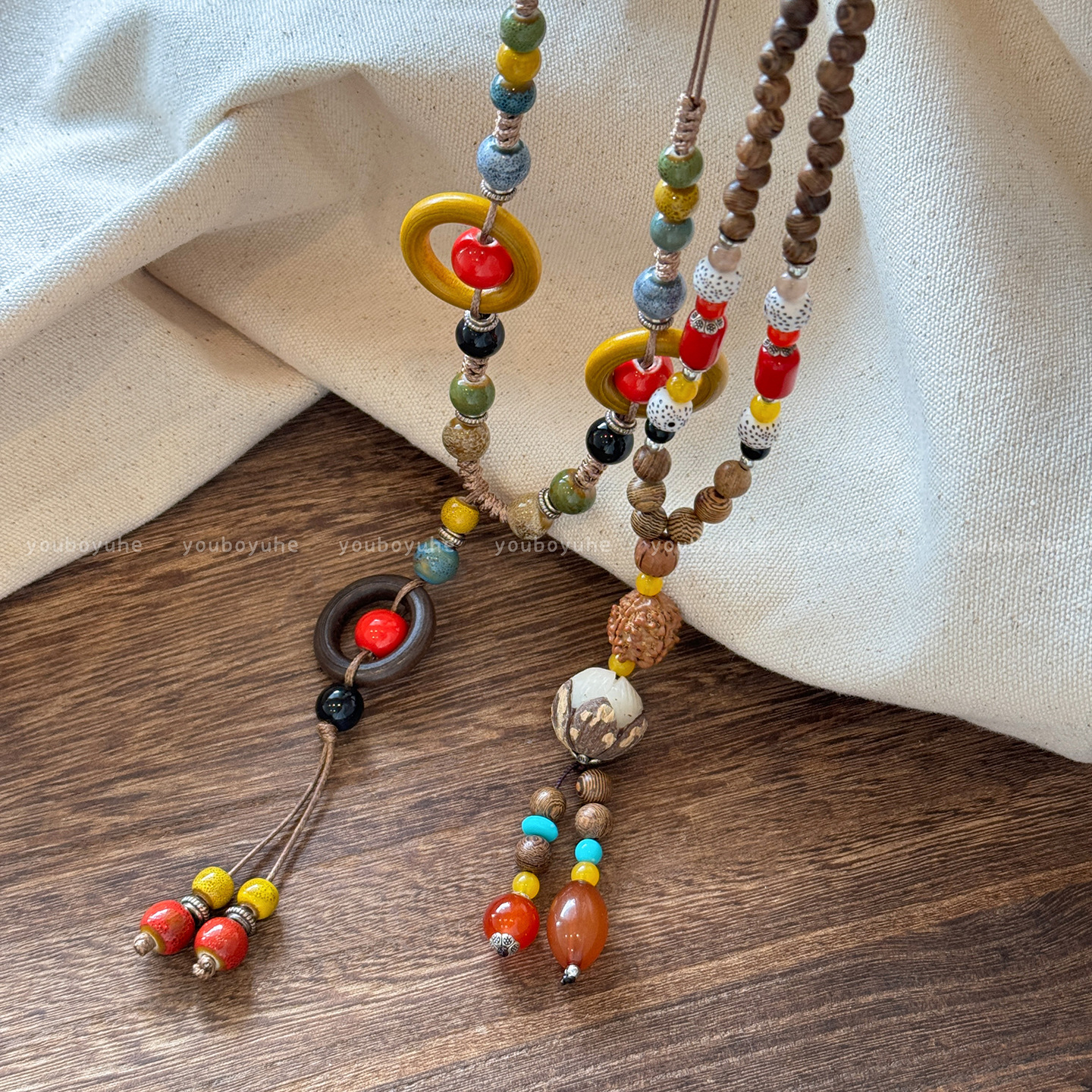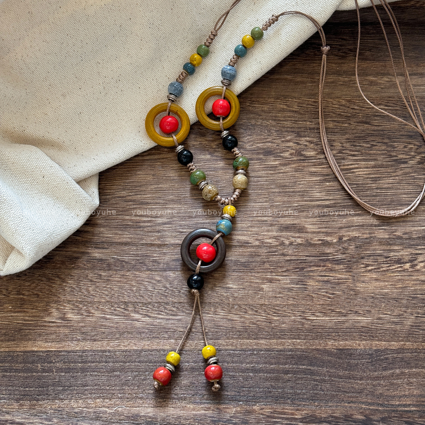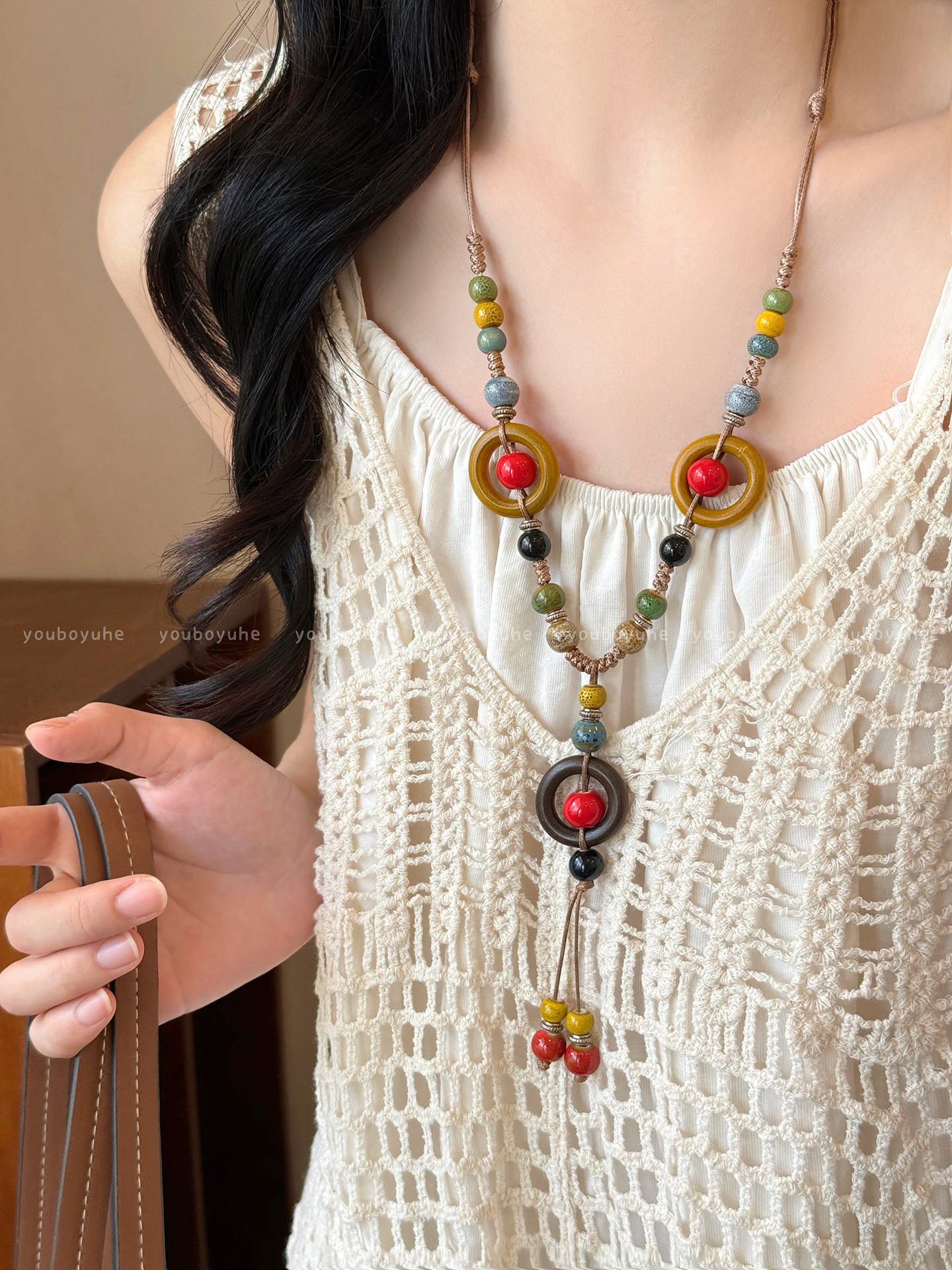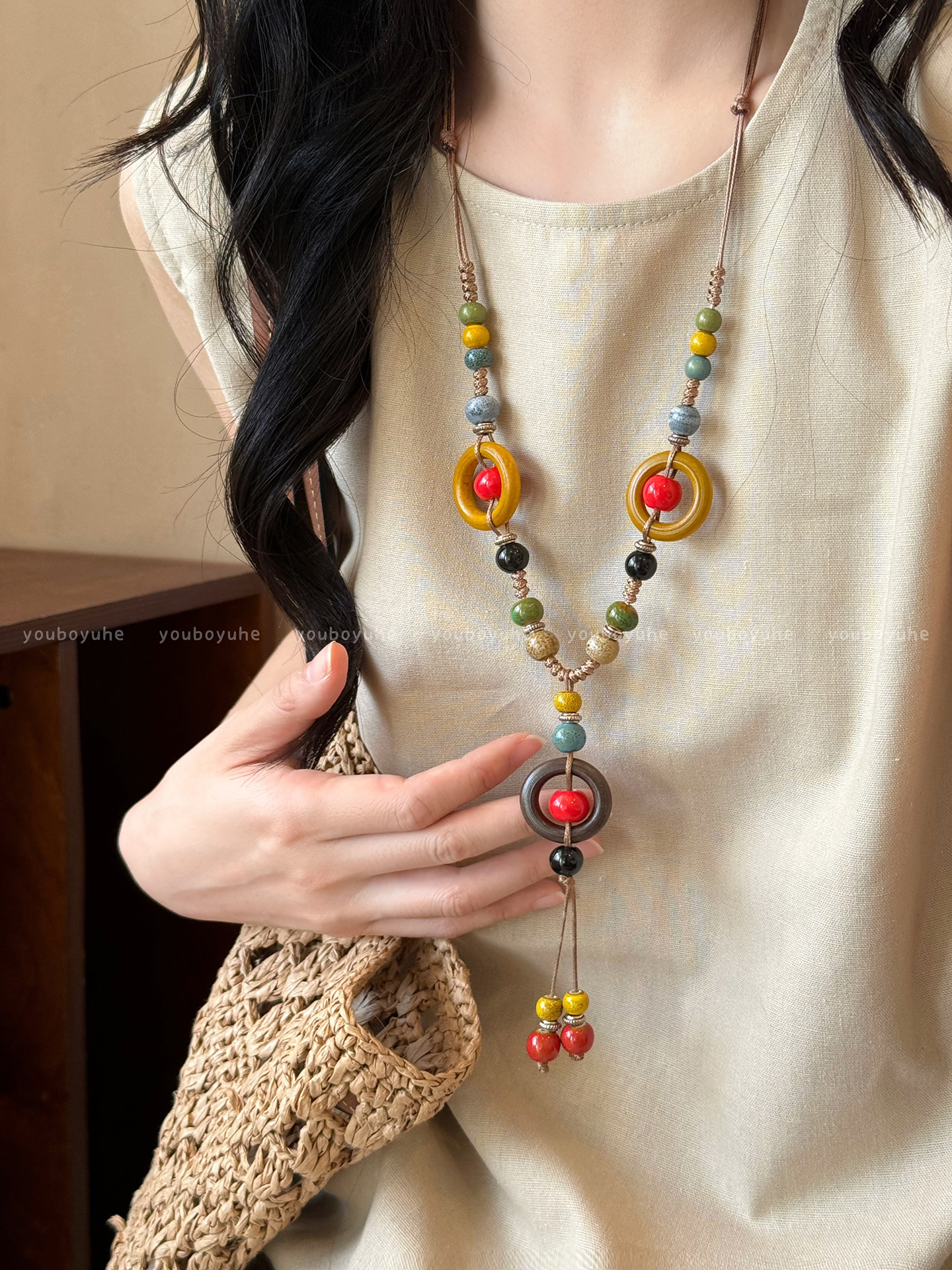 Bohemian Ceramic Tassel Beaded Necklace Women's Retro Ethnic Style Zen Long Sweater Chain New Chinoiserie Accessories