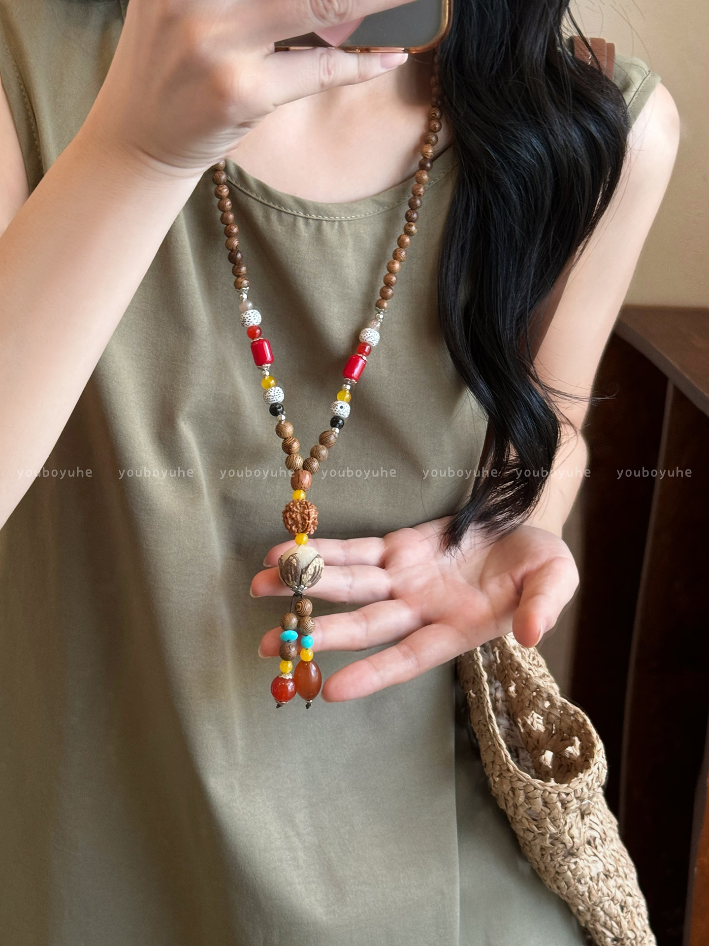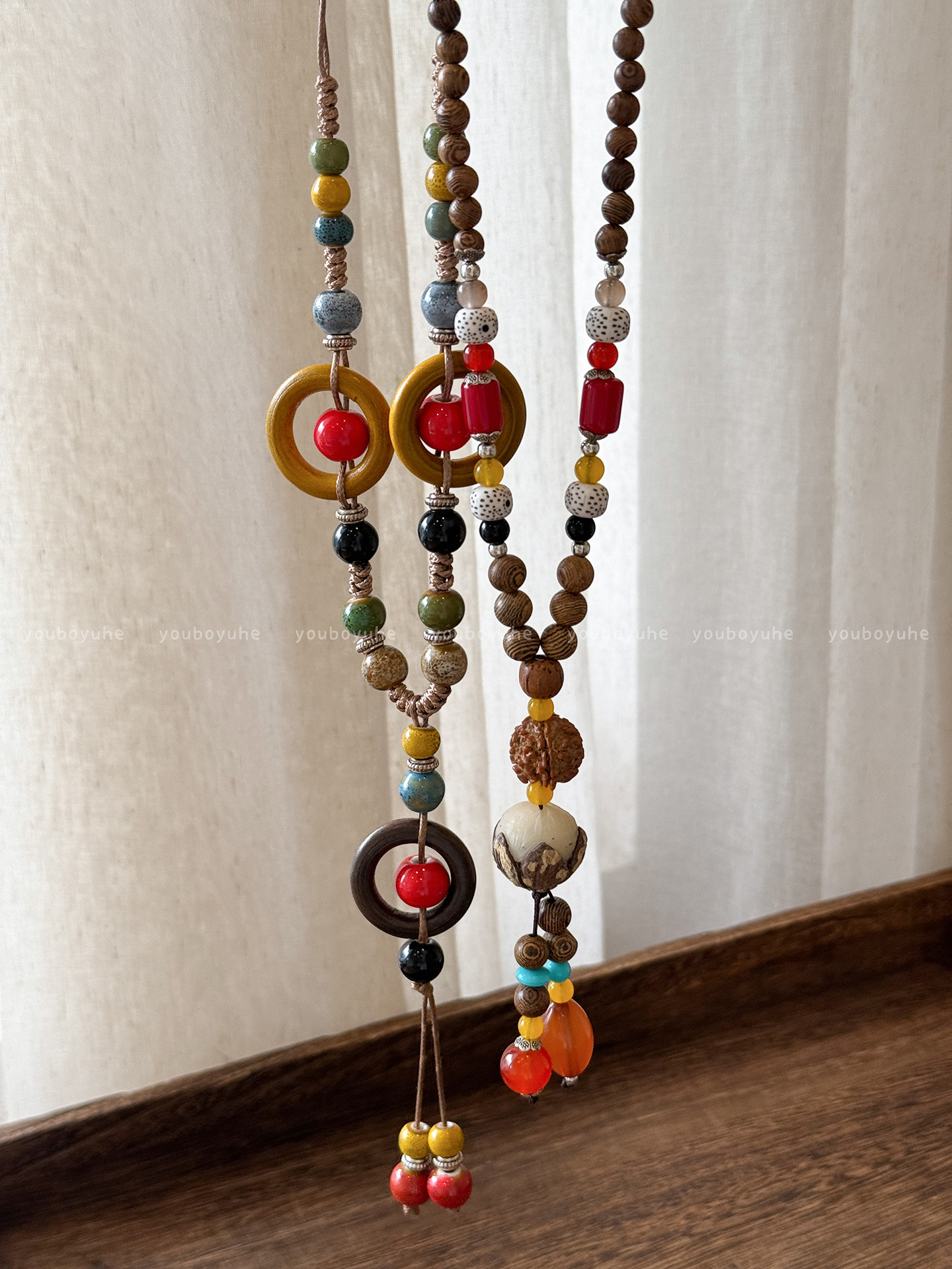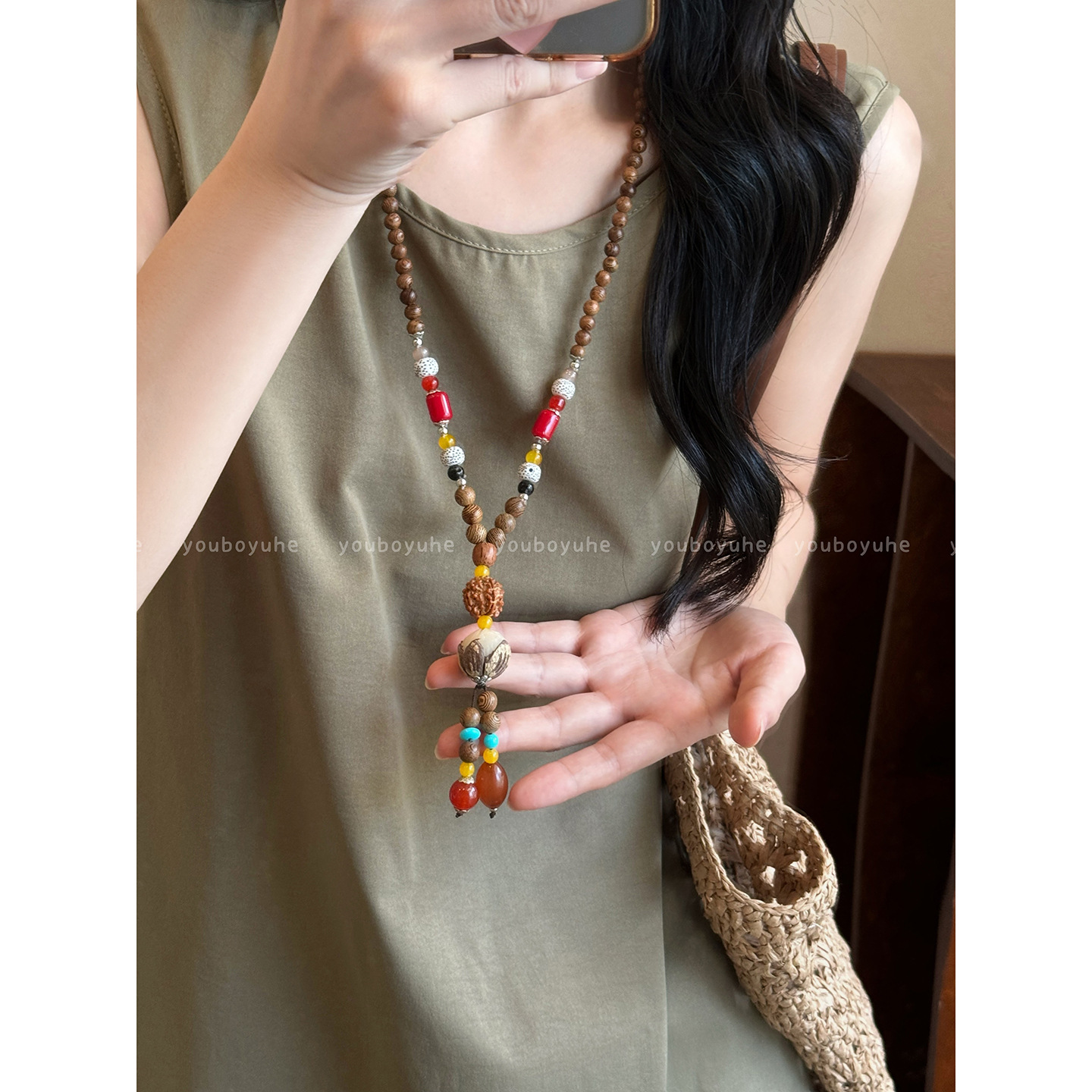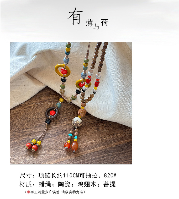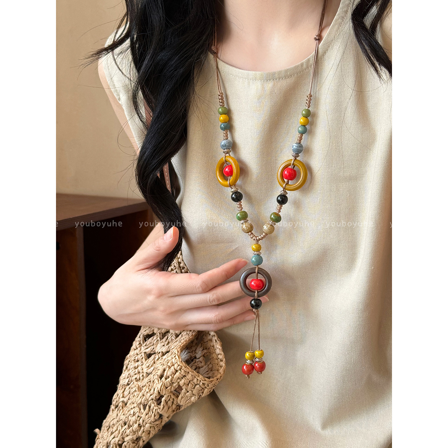 波西米亚陶瓷流苏串珠项链女复古民族风禅意长款毛衣链新中式配饰