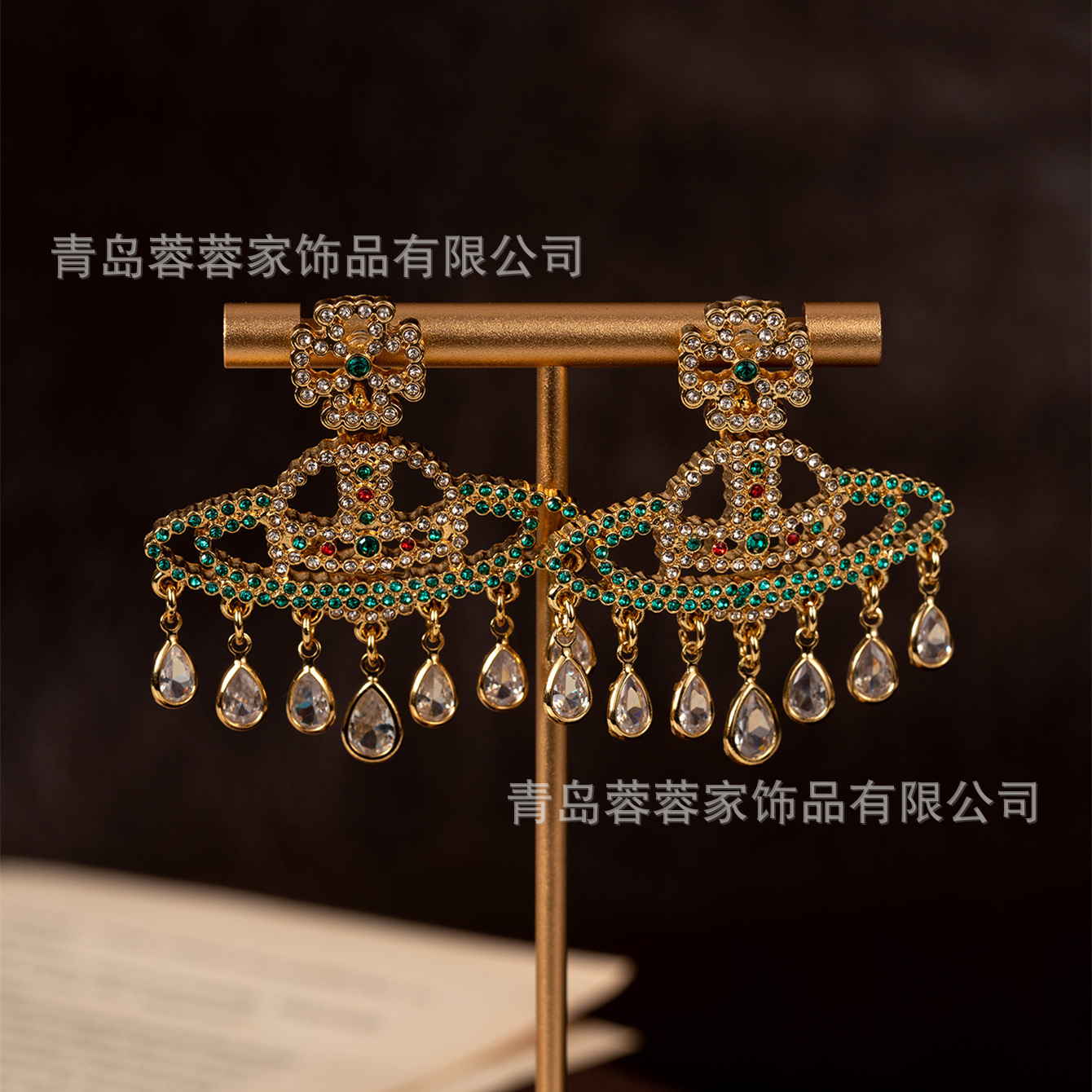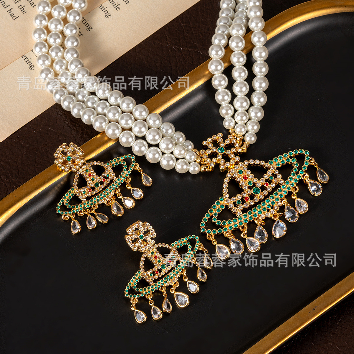 Cross-Border Medieval European and American Style Saturn Pearl Necklace Queen Mother Vivian Water Drop Tassel Vintage Earrings