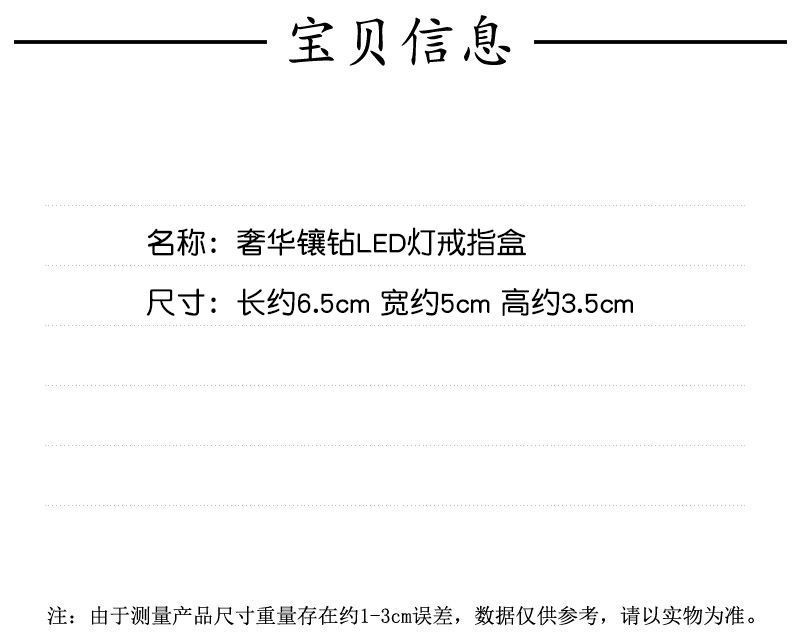 跨境爆款镶水钻奢华情人节礼物创意珠宝盒 led发光首饰戒指收纳盒