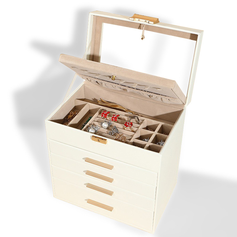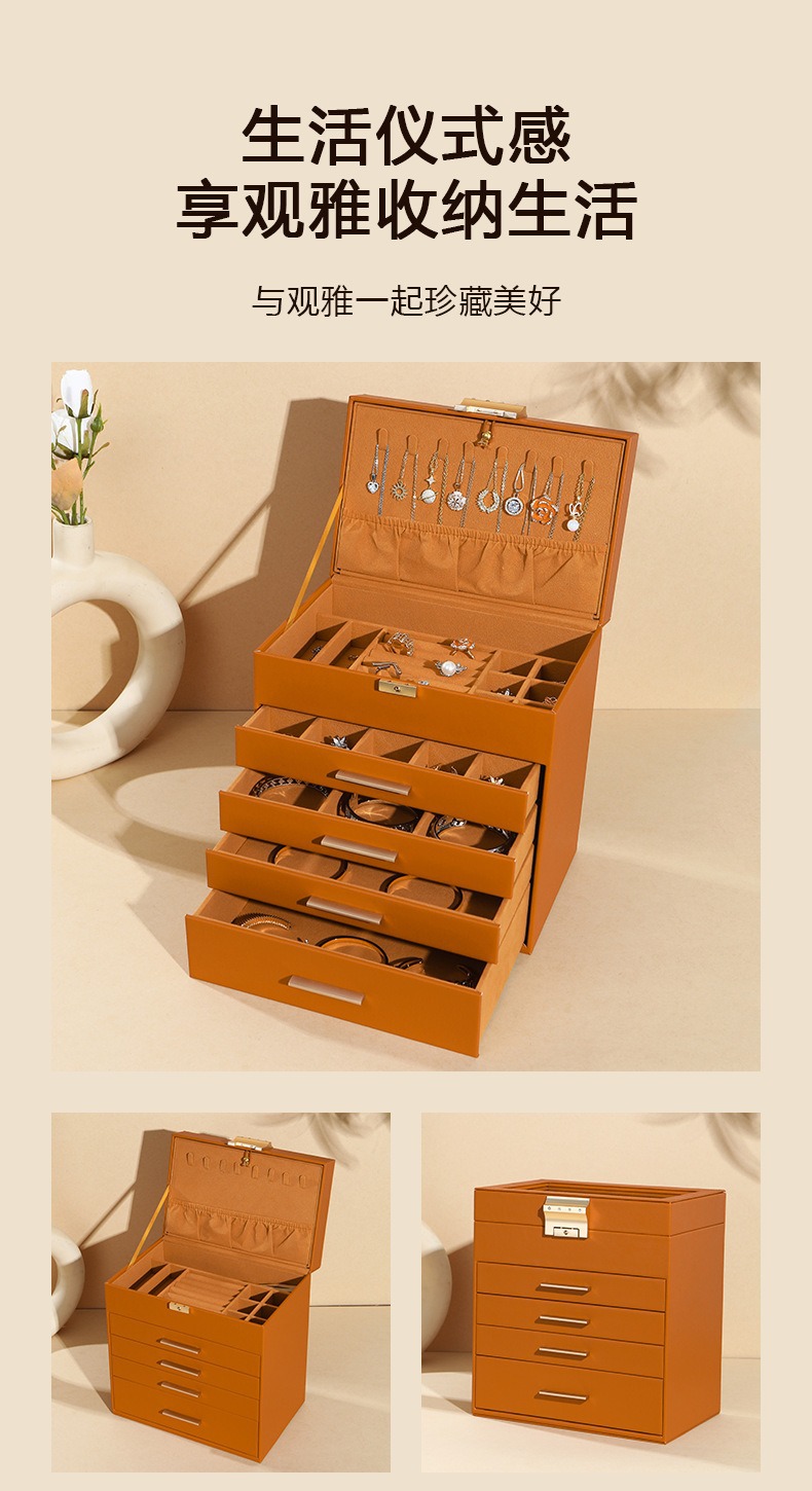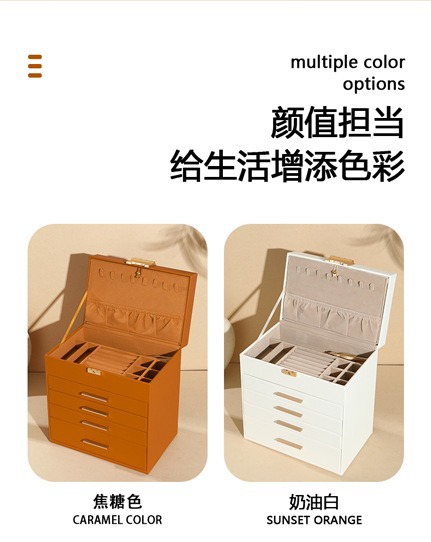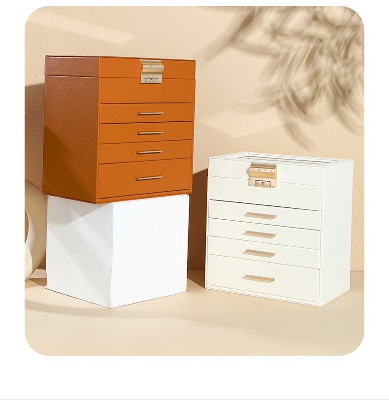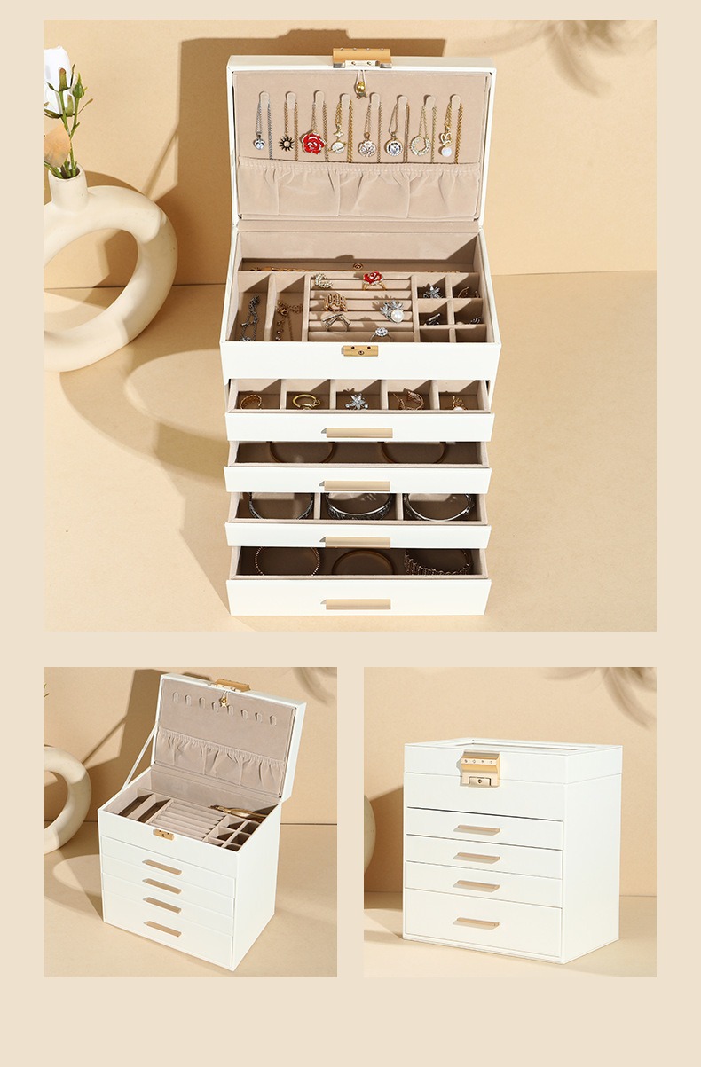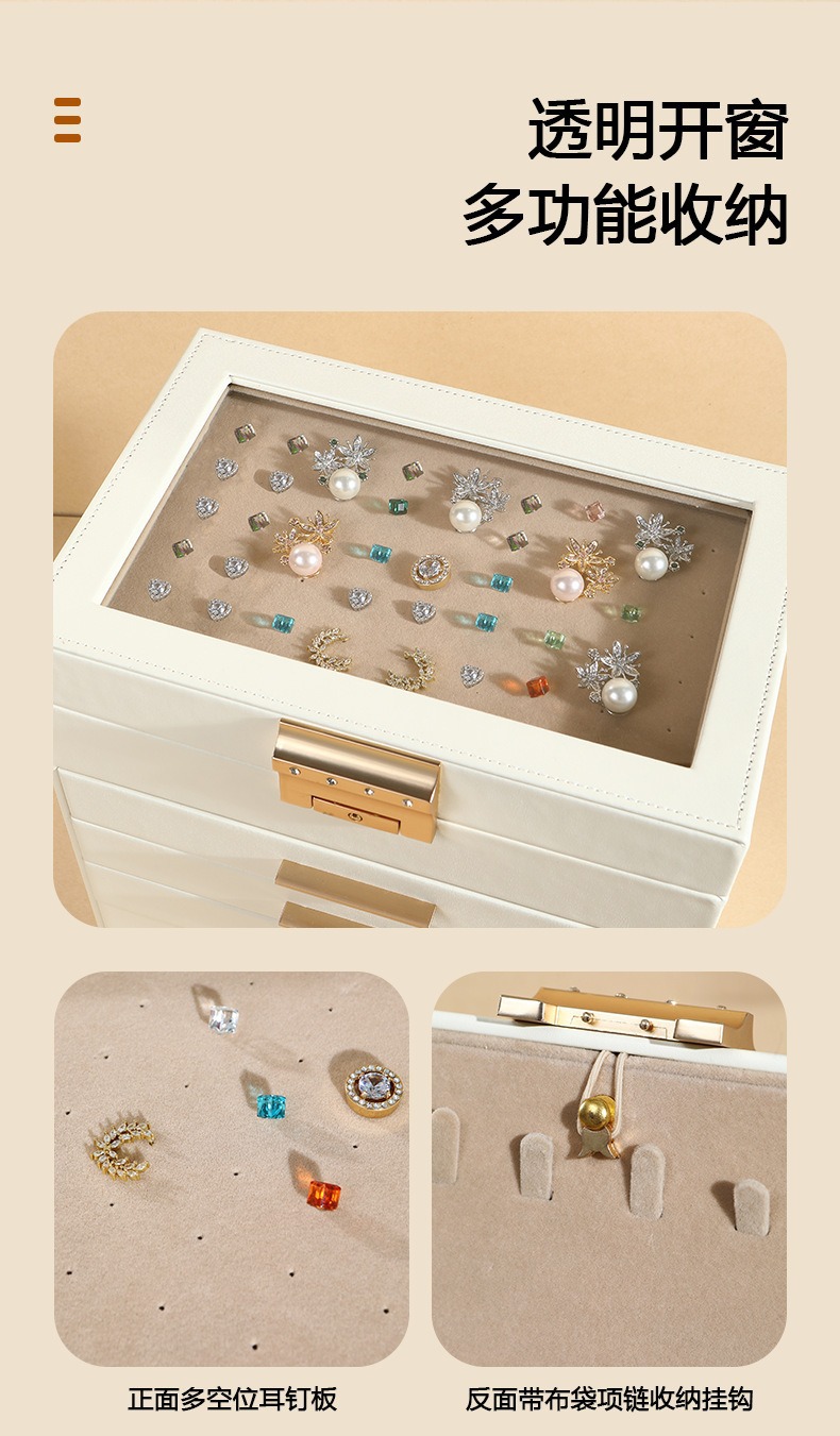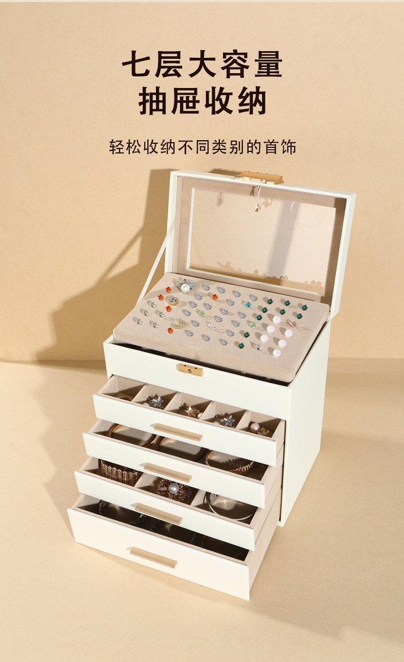 New Cross-Border Window Jewelry Box Seven-Layer Drawer Extra Large Capacity Anti-Oxidation Pu Jewelry Ring Jewelry Storage Box