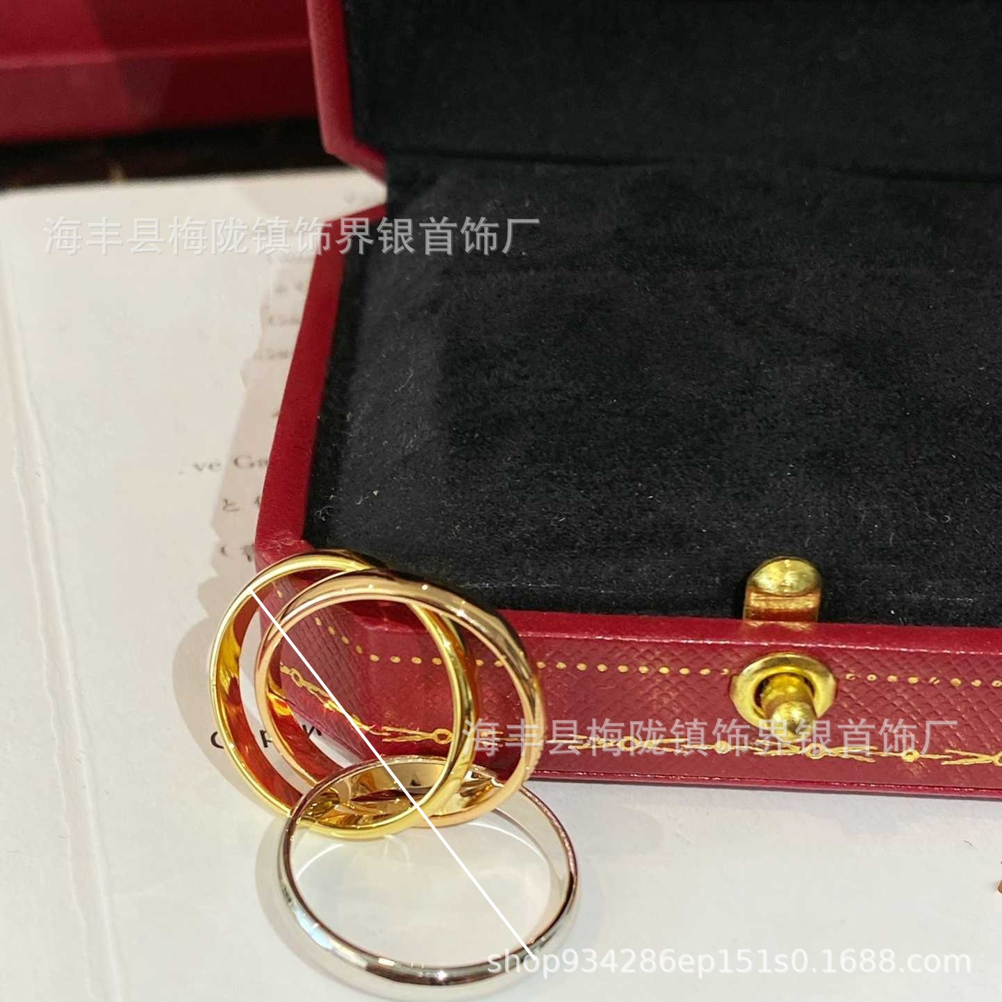 Kajia's Classy 18K Three-Color Three-Ring Ring Entwined Classic Ring Cnc Heavy Industry Creates the Same Style for Men and Women