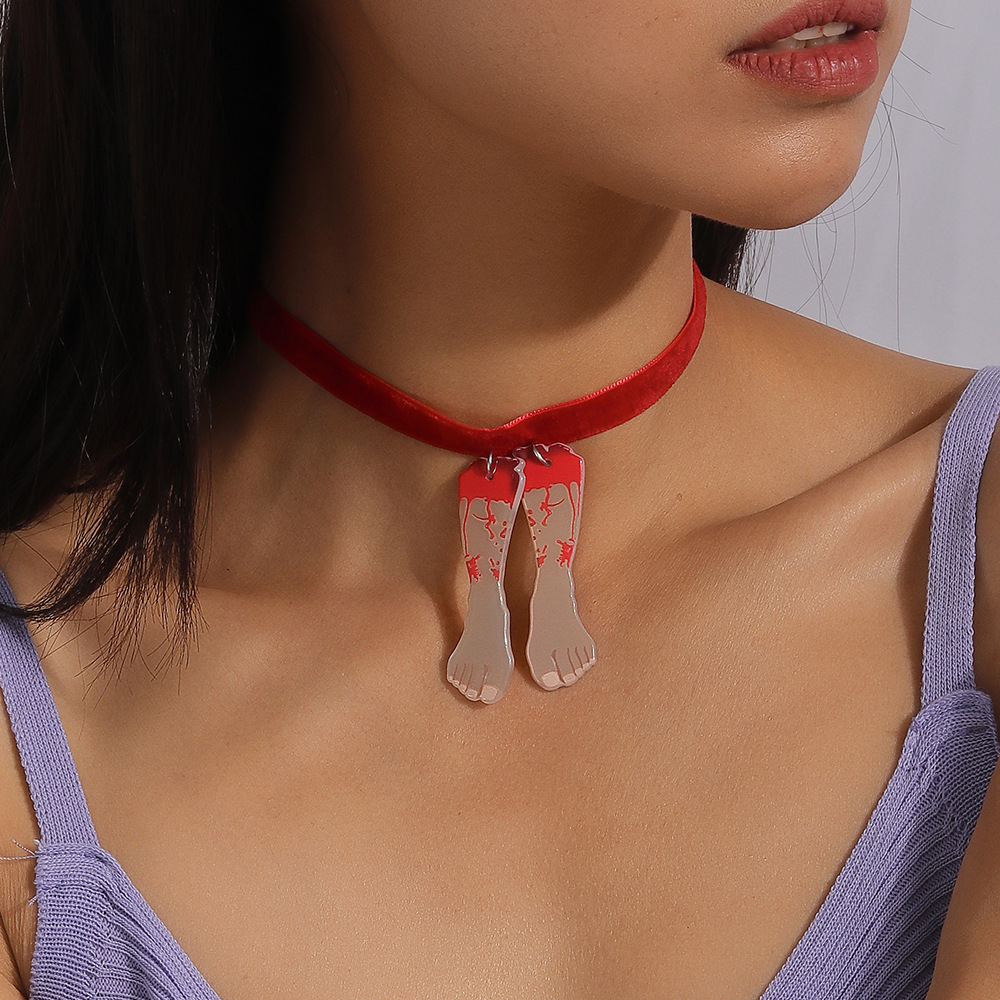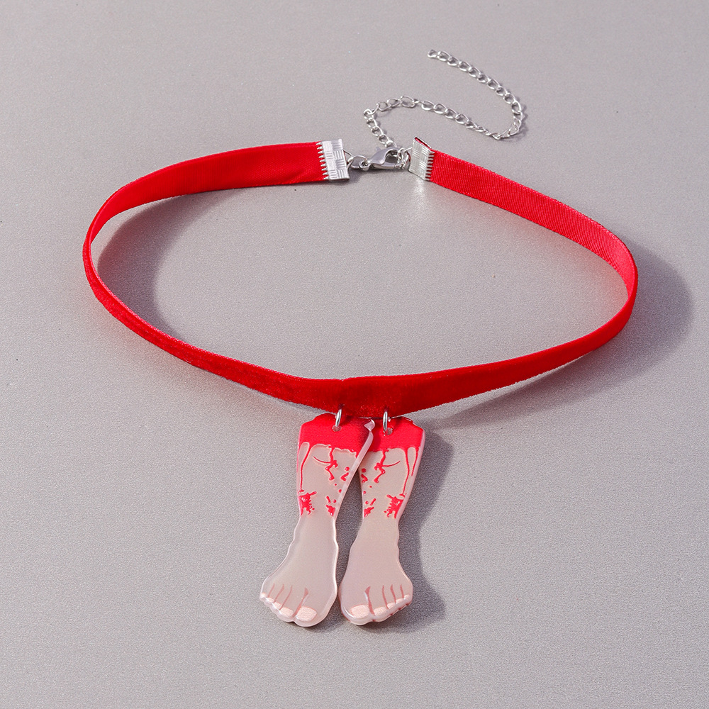 European and American Cross-Border New Fashion Creative Design Horror Broken Foot Necklace Personalized Halloween Double Foot Clavicle Chain Jewelry