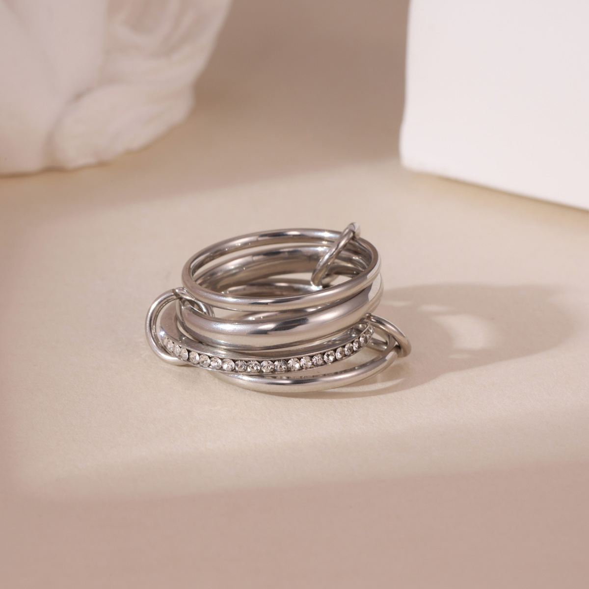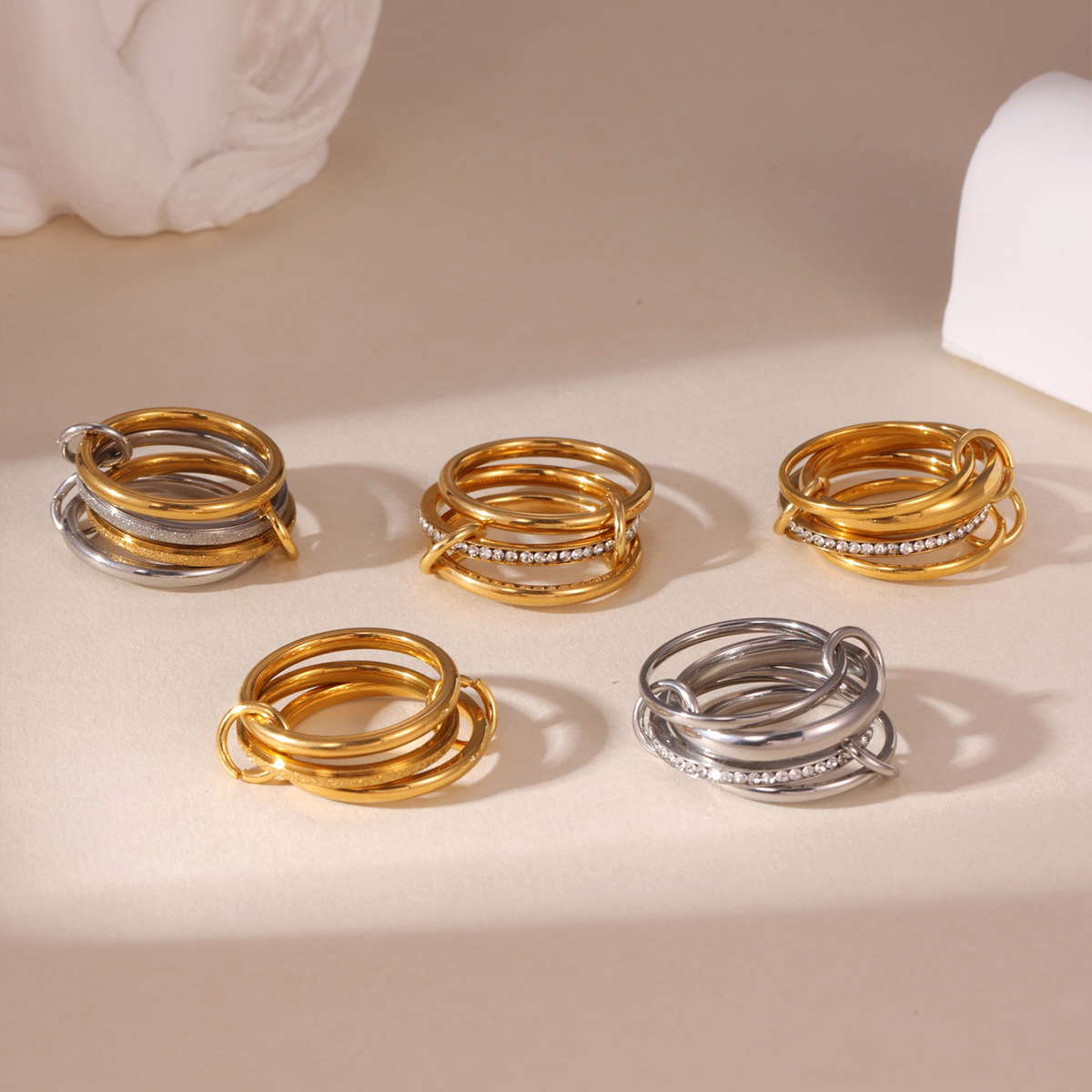 Cross-Border Hot-Selling New Multi-Layer Stainless Steel Rings, Interlocking Rings for Women, Fashionable and Versatile, Interlocking Rings, Ready for Wholesale