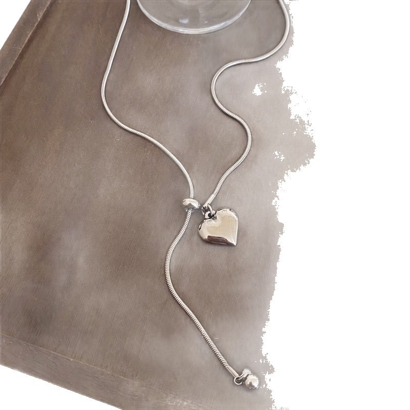 Minimalist Silver Heart Pendant Necklace for Women Autumn and Winter Accessible Luxury High-End Titanium Steel Pull-Out Long Sweater Chain Accessories
