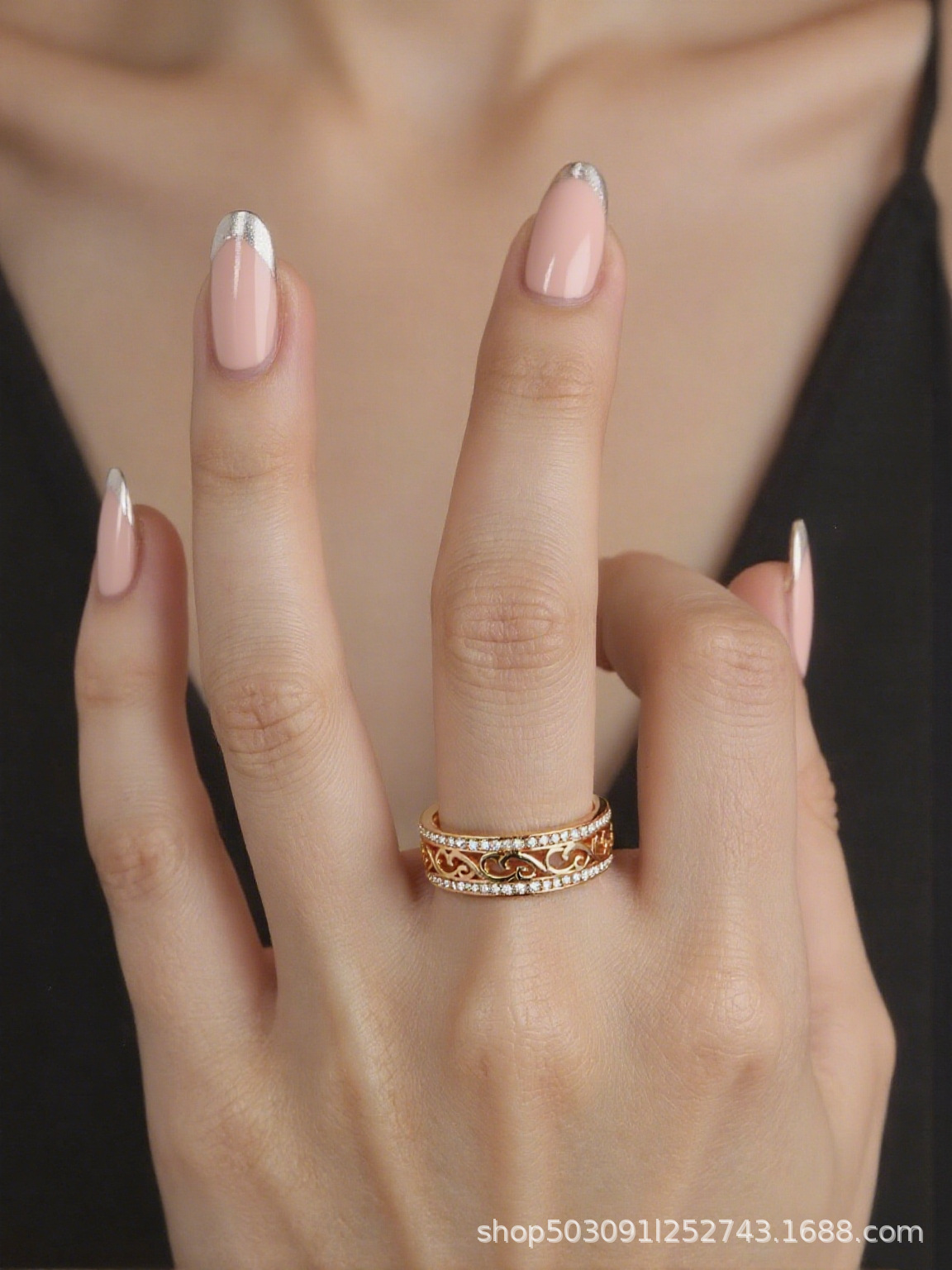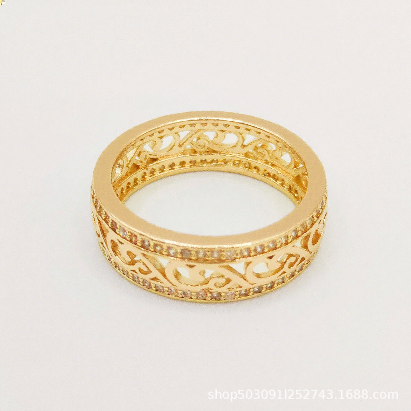 Wish Popular Natural Zircon Ring Exquisite Women's Double Row Diamond Cut Out High-End Rose Gold Ring Jewelry