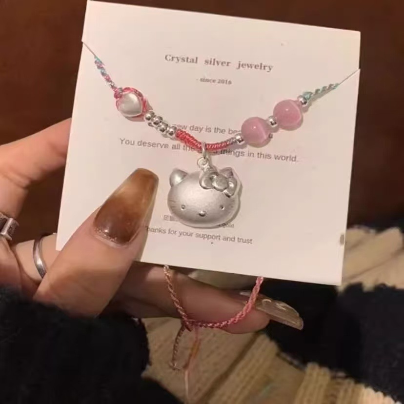 Color: Kt cat pink rope necklace