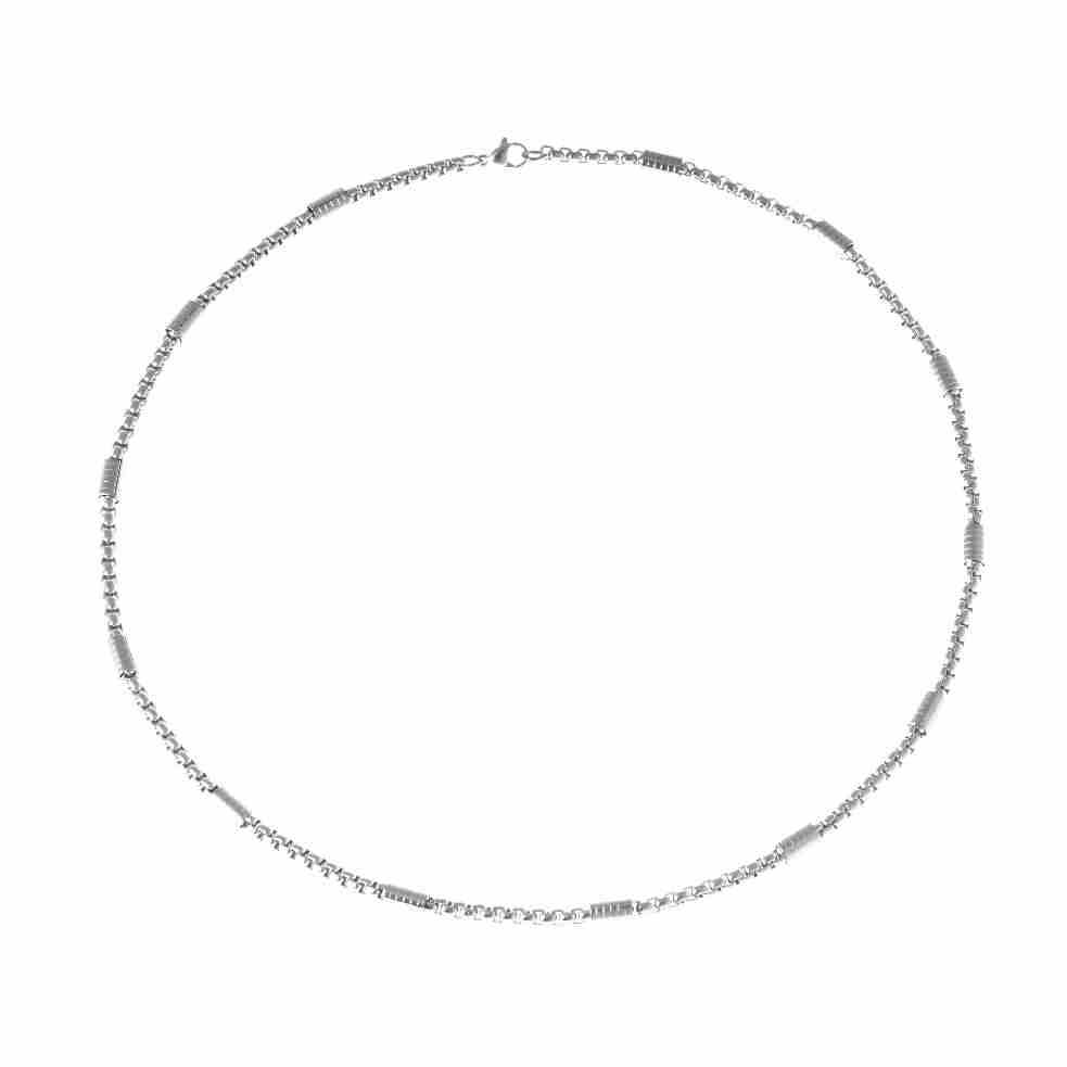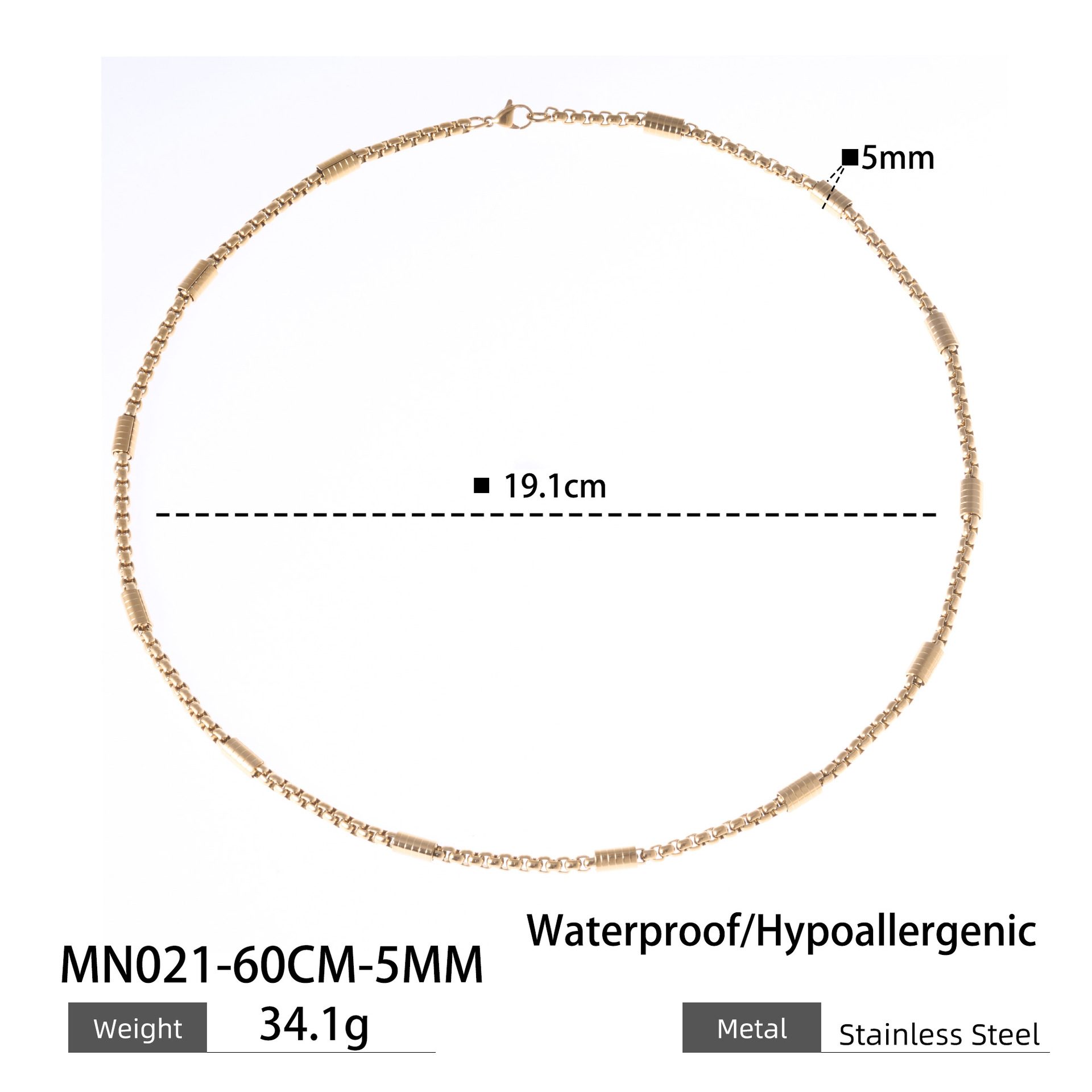 Stainless Steel Cylindrical Square Pearl Necklace Titanium Steel Men's Domineering Neutral Wear Motorcycle Trend Punk Retro