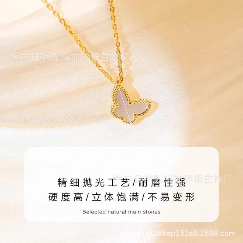Color: White mother-of-pearl butterfly necklace [rose gold]