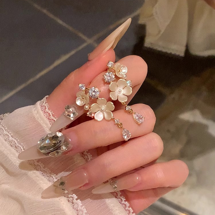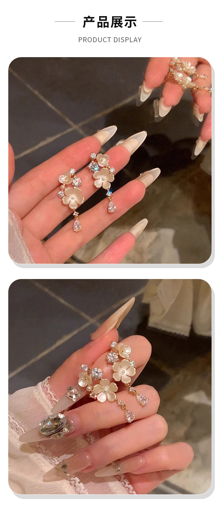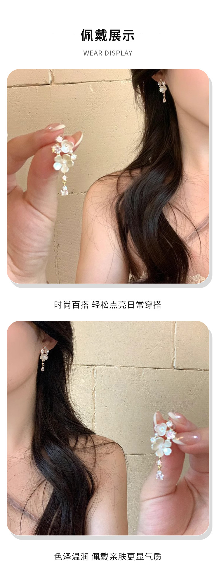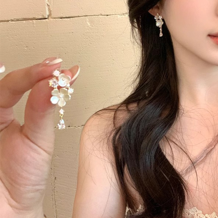 French-Style Zircon Flower Tassel Earrings for Women, Light Luxury, High-End Earrings, Sweet Forest-Style Temperament Jewelry, Ear Accessories, Ear Pendants