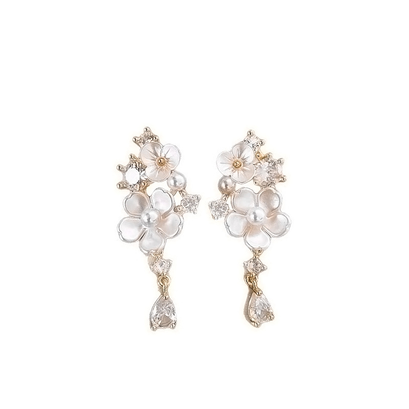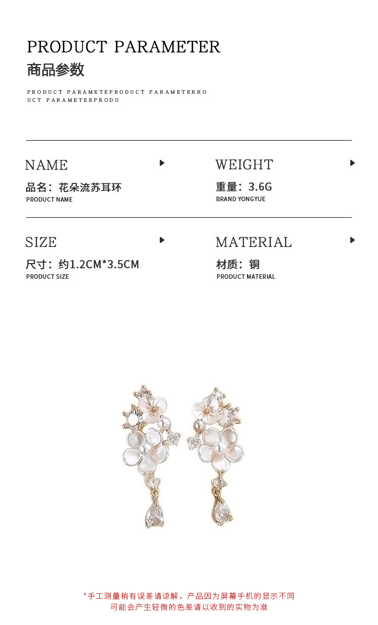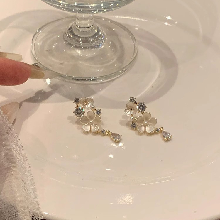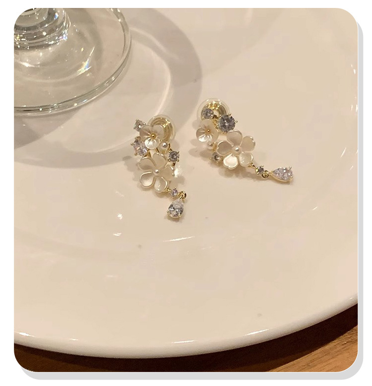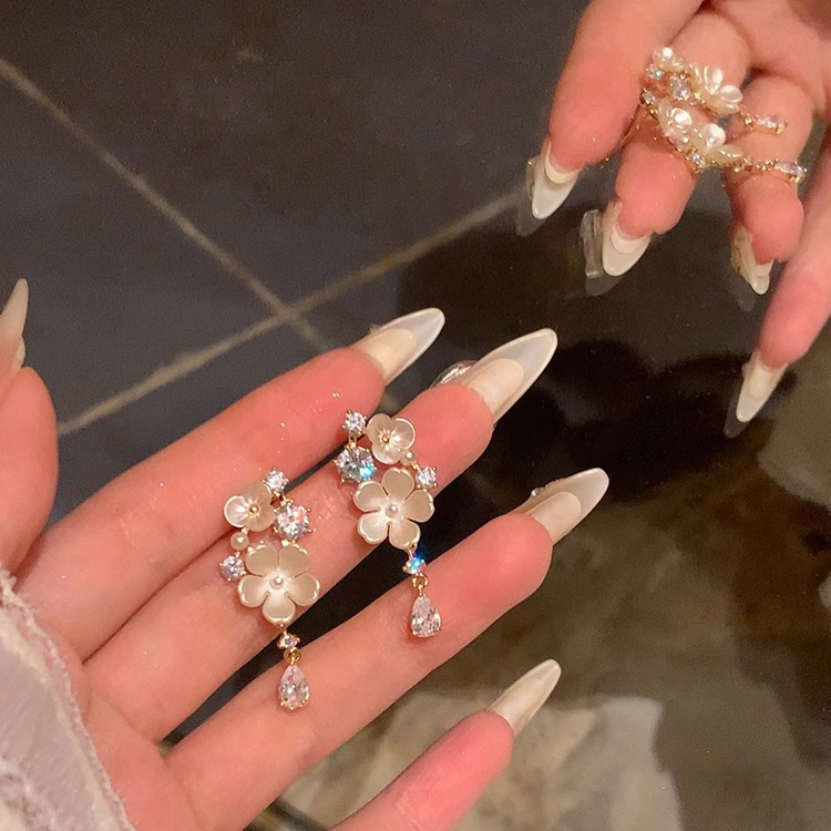 French-Style Zircon Flower Tassel Earrings for Women, Light Luxury, High-End Earrings, Sweet Forest-Style Temperament Jewelry, Ear Accessories, Ear Pendants