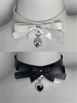 Original Subculture Mass-Produced Bow Choker Collar Heart Rhinestone