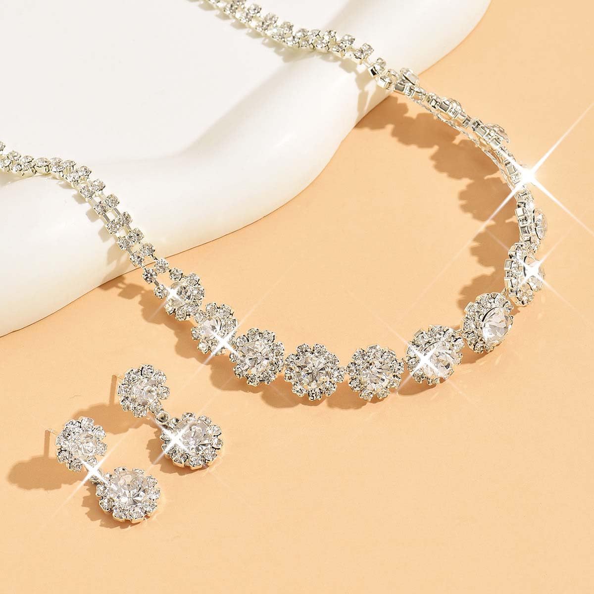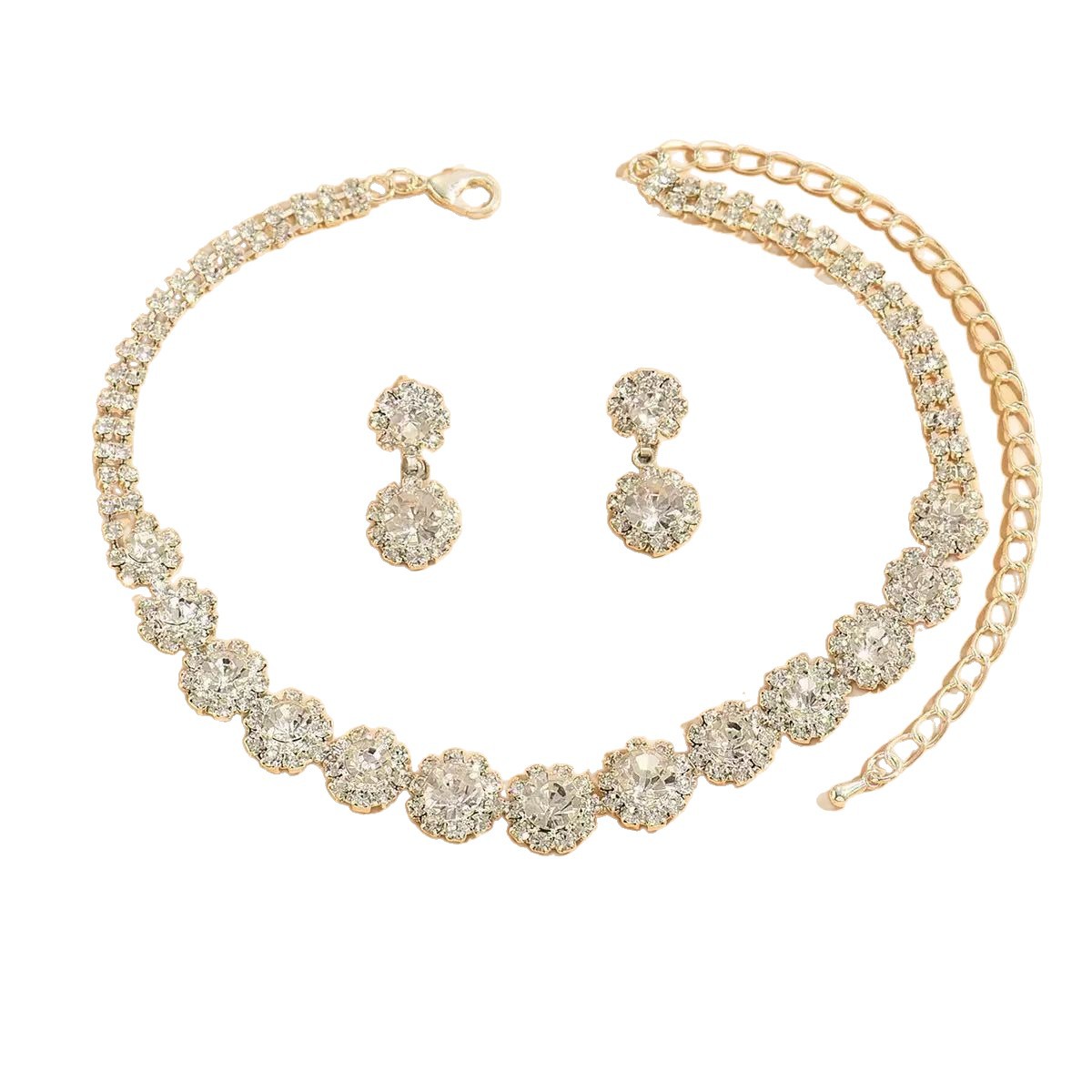 Spot Cross-Border New Fashion Jewelry, Diamond-Encrusted Shiny and Exquisite Necklaces and Earrings, Design Flower Necklace Set