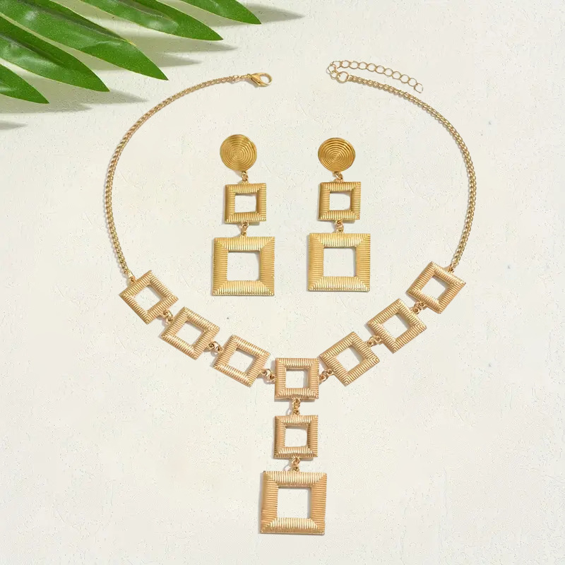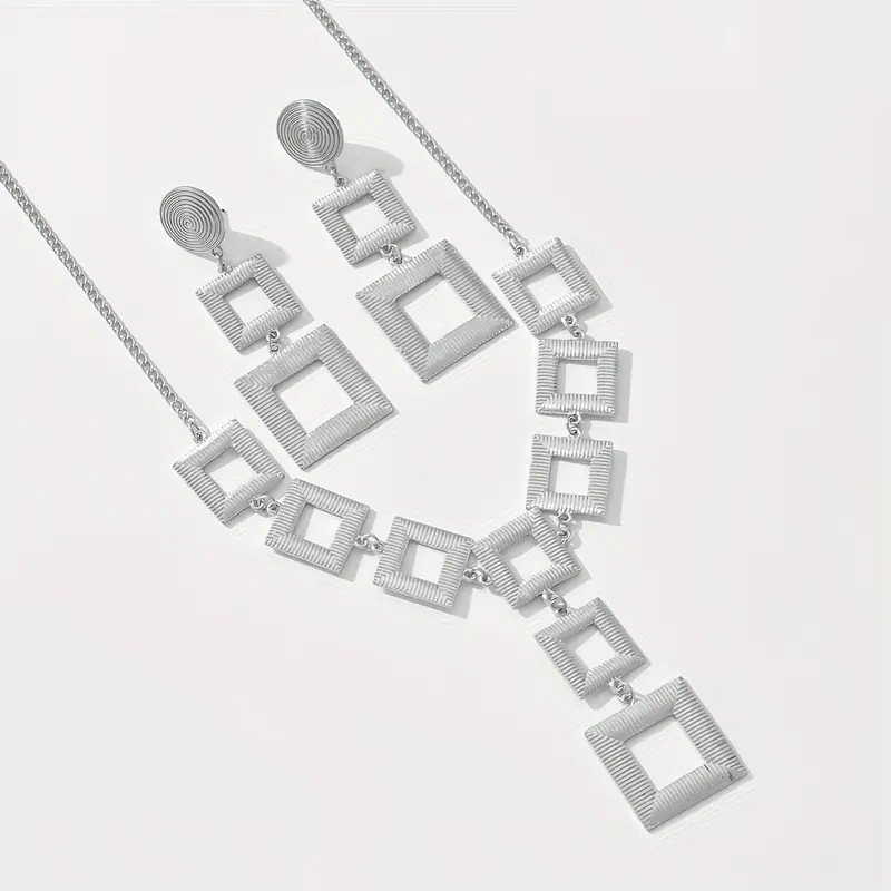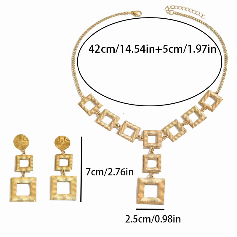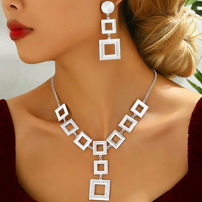 European and American Cross-Border Geometric Square Earrings Necklace Set, Personalized Niche Design, High-End Jewelry Set