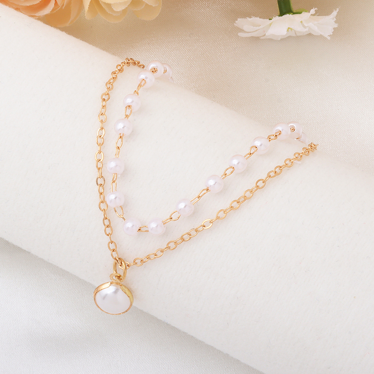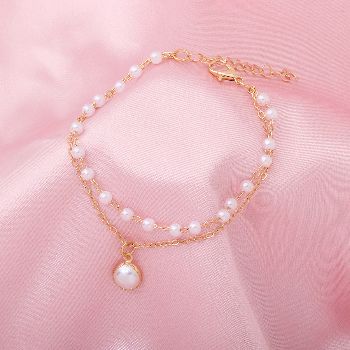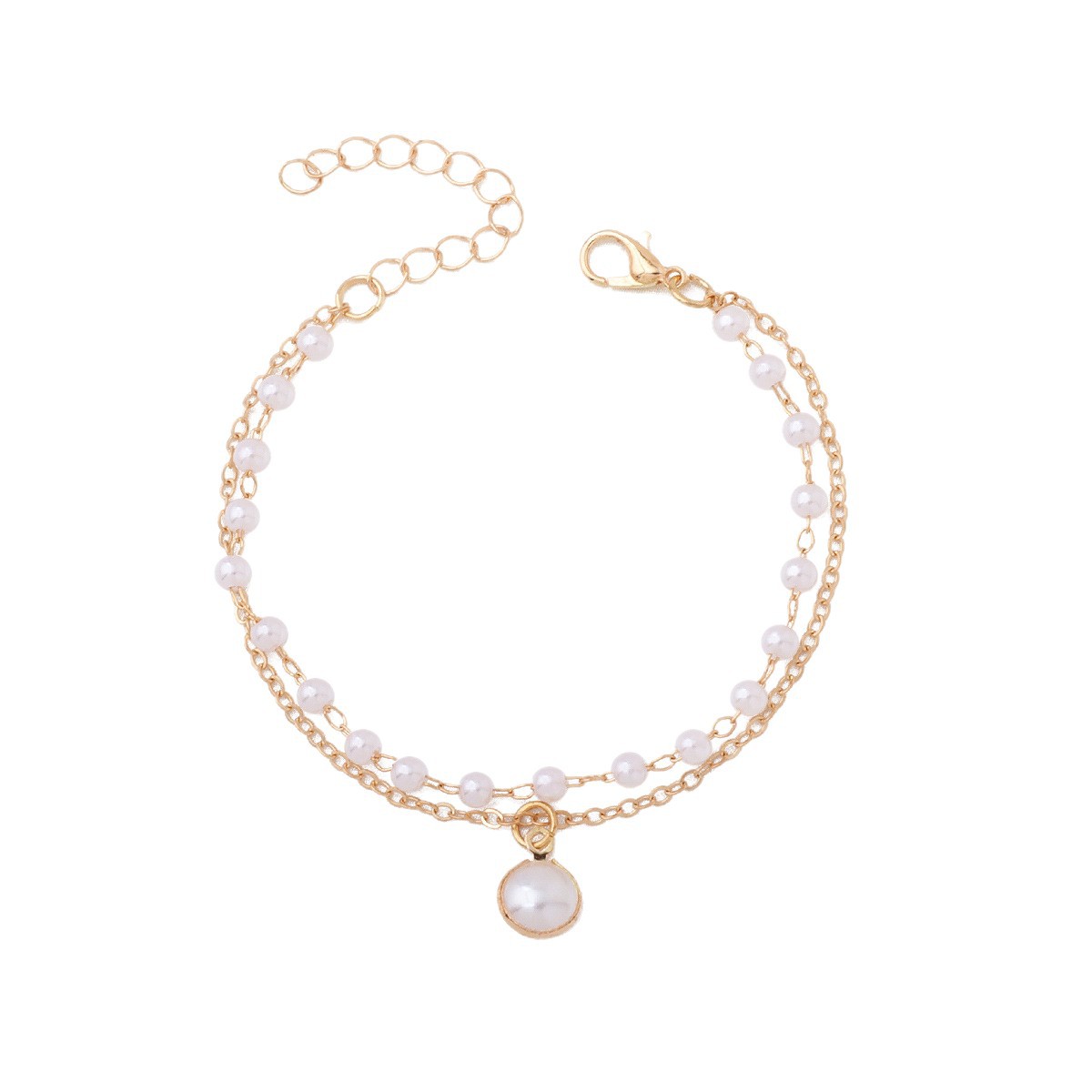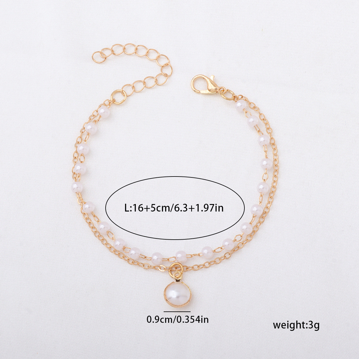 European and American Cross-Border Bracelets Stacked Style Double-Layer Pearl Pendant Bracelets Versatile Fashion Simple Accessories Jewelry Wholesale