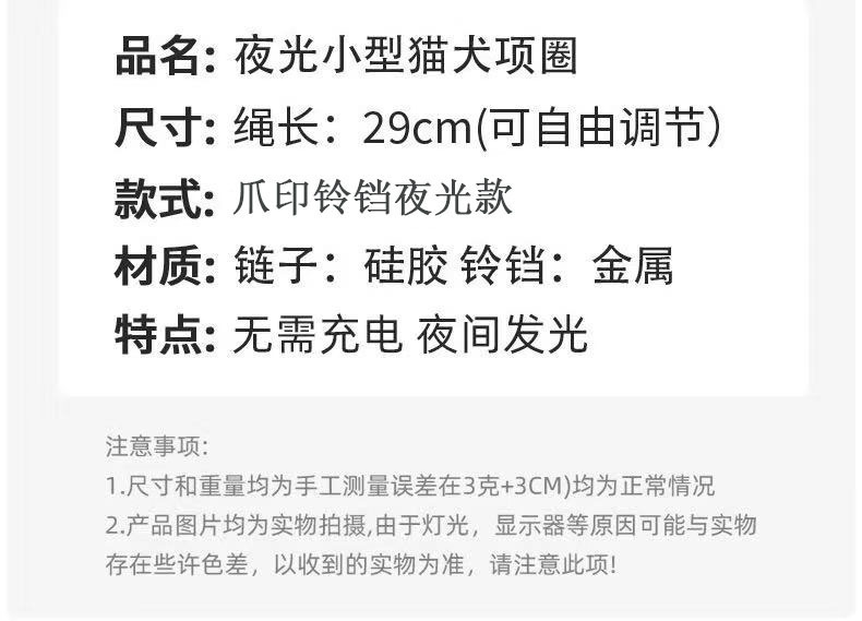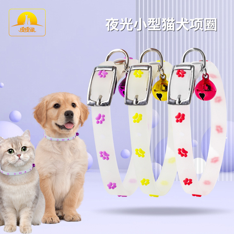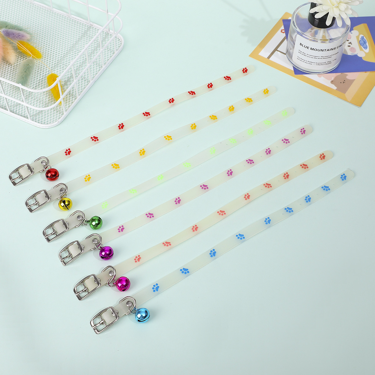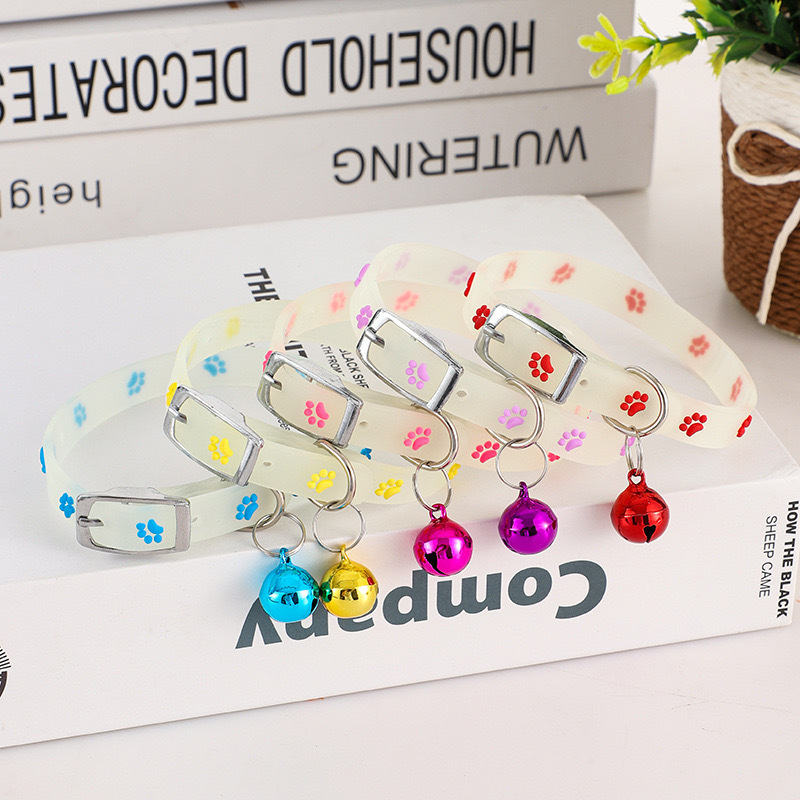 Fluorescent Silicone Footprint Cat Collar Puppy Luminous Collar with Bell Night Anti-Loss Manufacturer Ready Stock