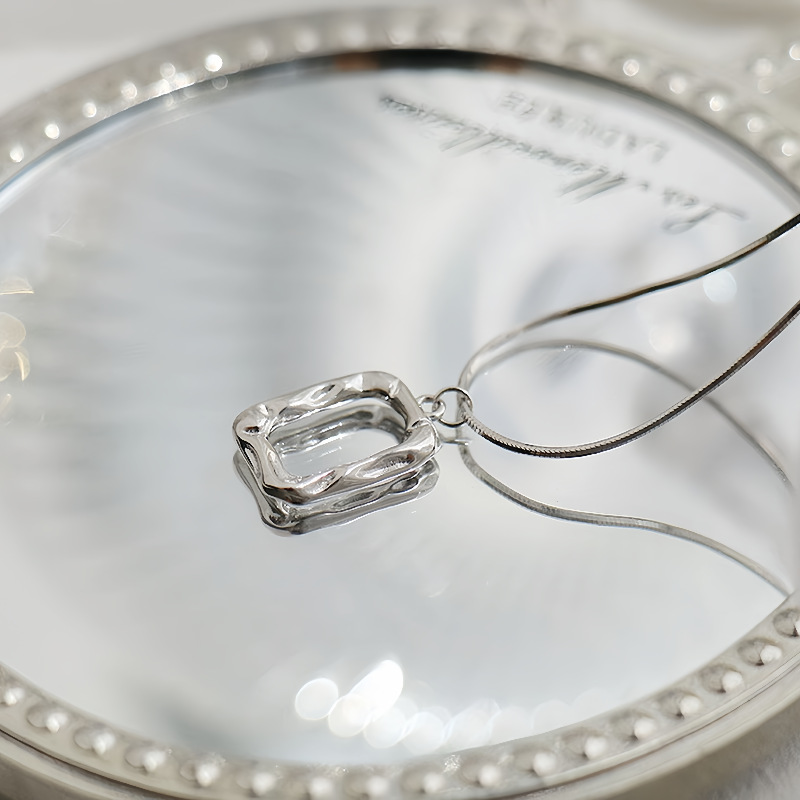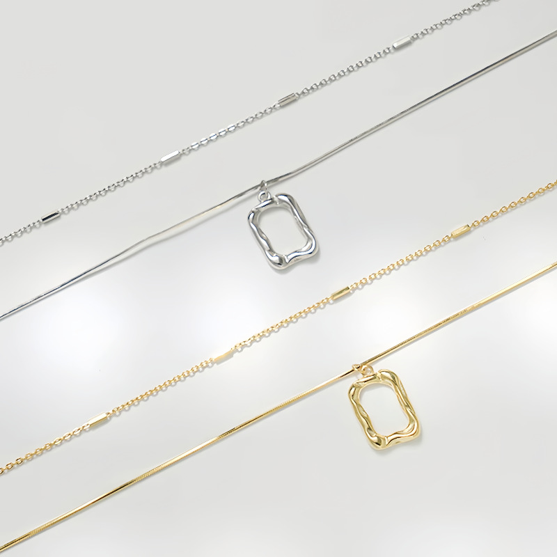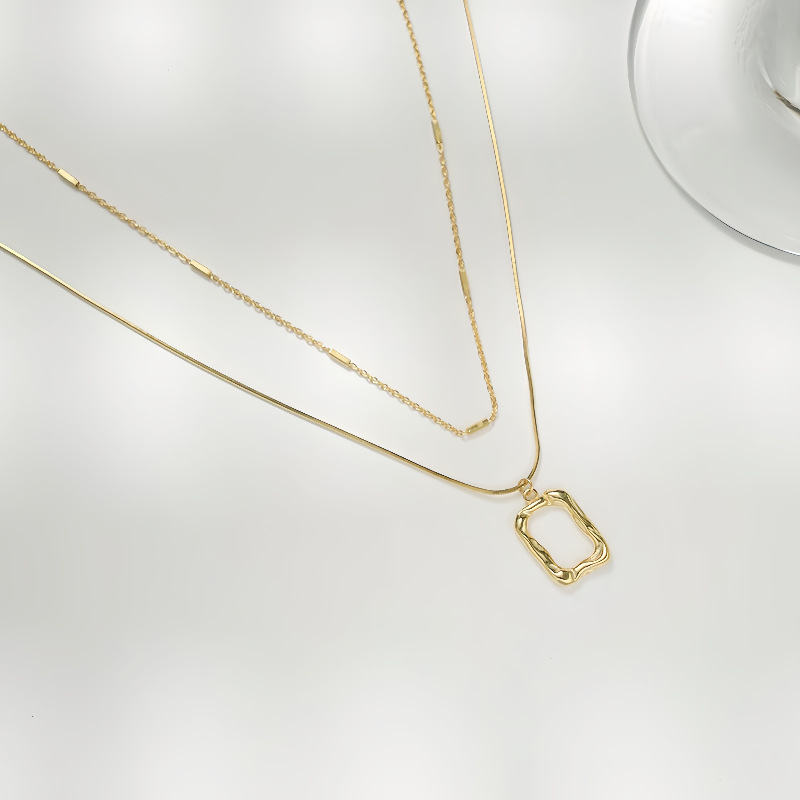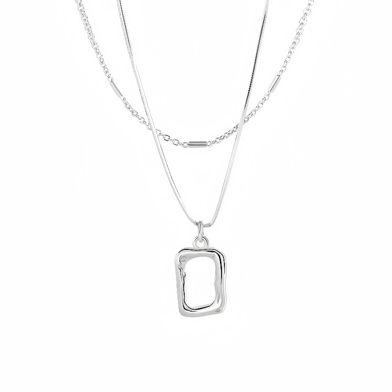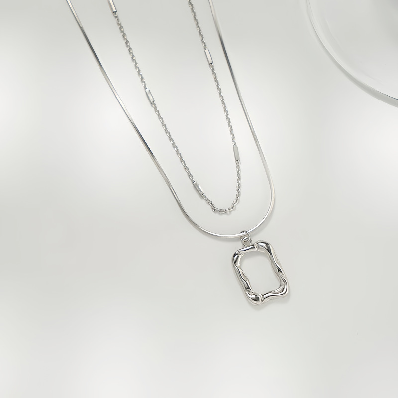 Geometric Double-Layered Necklace Frame Lava Necklace Cross-Border Exclusive Art Frame Versatile Collarbone Accessory Collarbone Chain