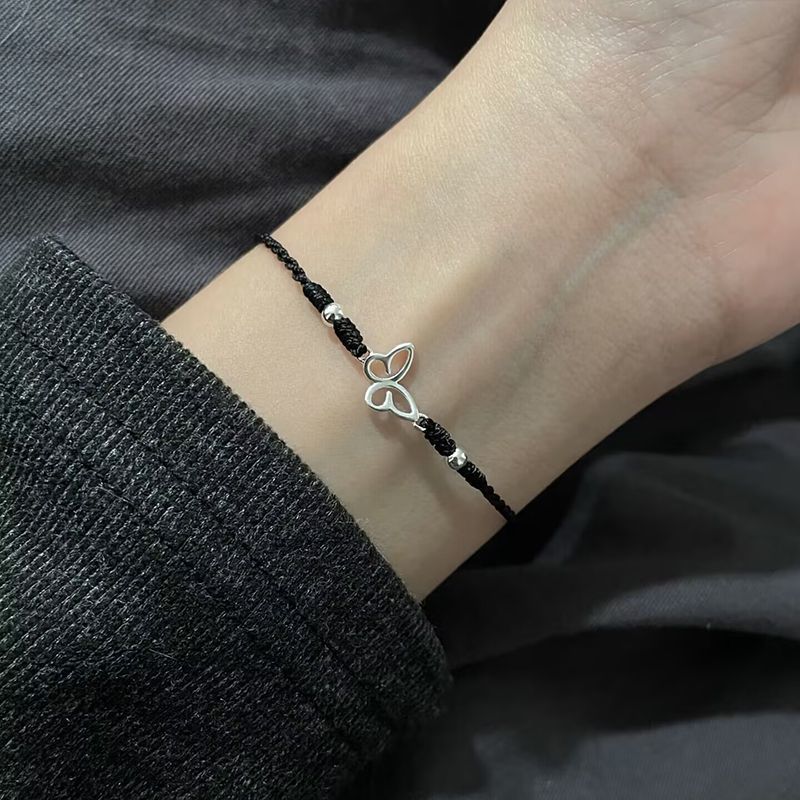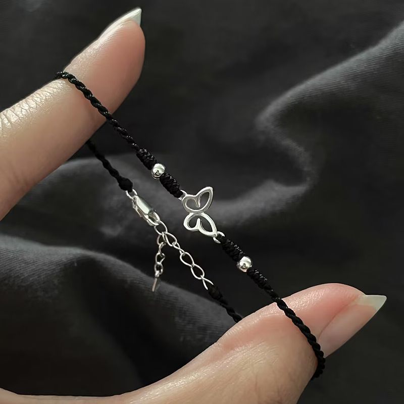 Silver Butterfly Dream Hollow Butterfly Black Rope Bracelet Minimalist Style Exquisite Niche Design Versatile Women Adjustable Light Luxury