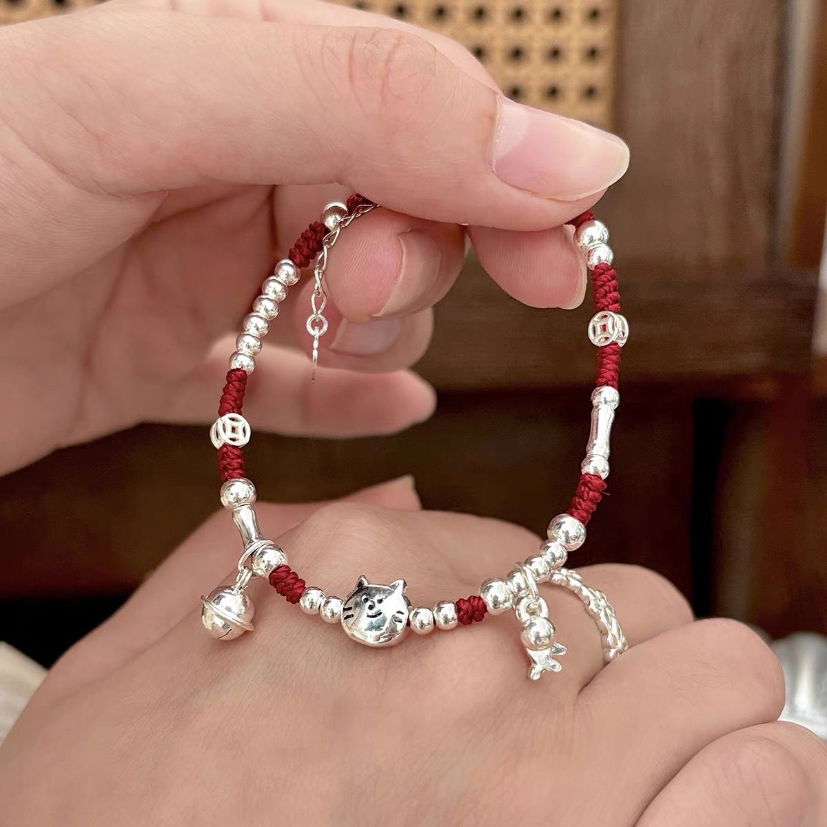 Cat Fish Red Rope Bracelet for Women in Their Zodiac Year, Accessible Luxury Niche Design, High-End Braided Red Bracelet Niche