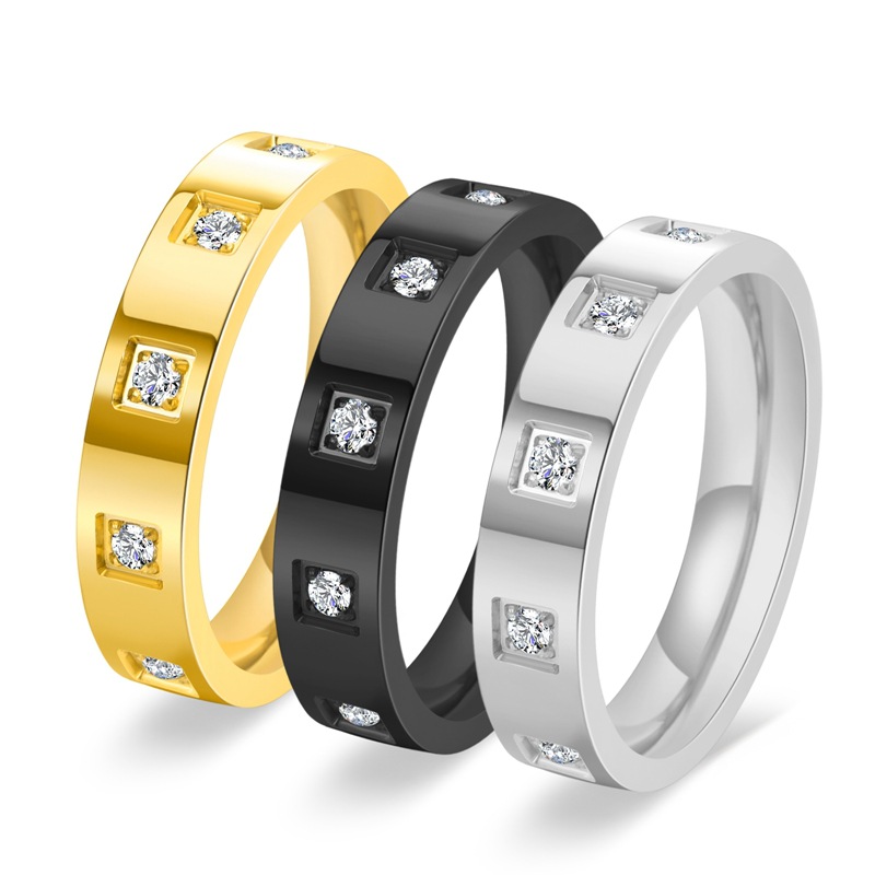 Ring: European and american new high-end women's narrow version 18k gold carved square grids circle diamond ring tweed styleelegant ring