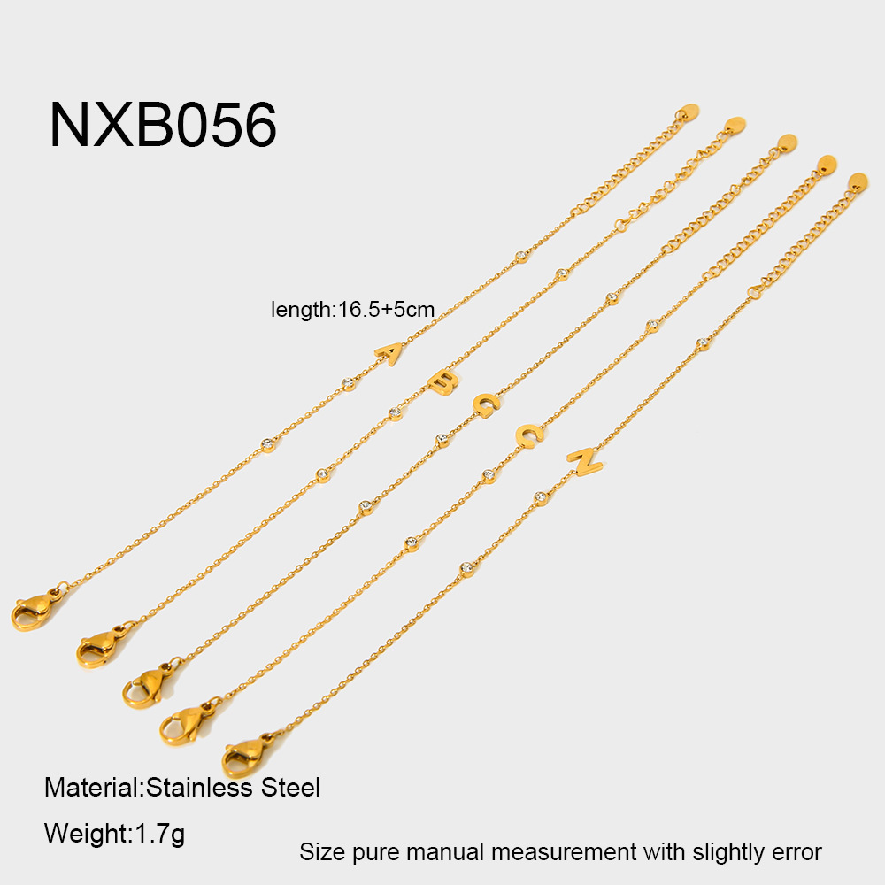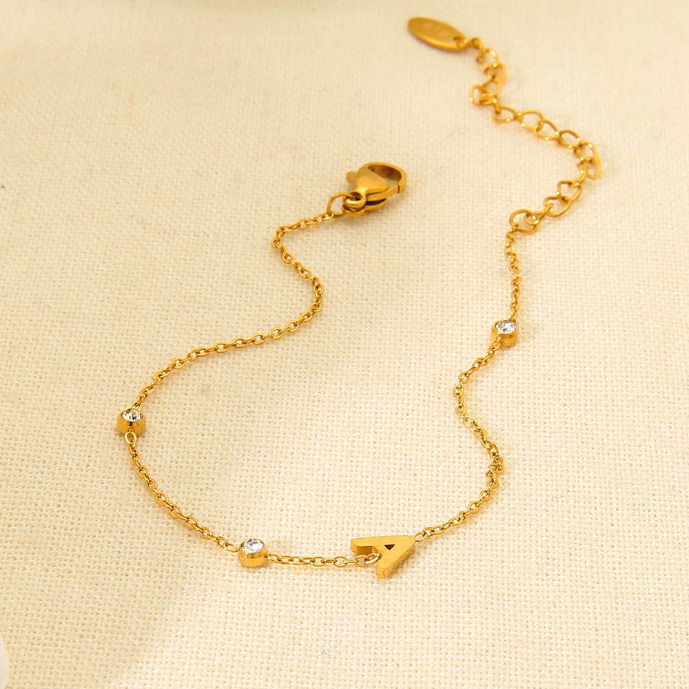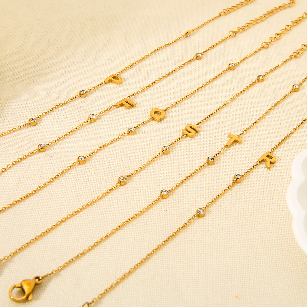 European and American Ins Zircon Letter Bracelet Plated with 18K Gold Stainless Steel Chain Capital English Bracelet Accessible Luxury Jewelry Wholesale