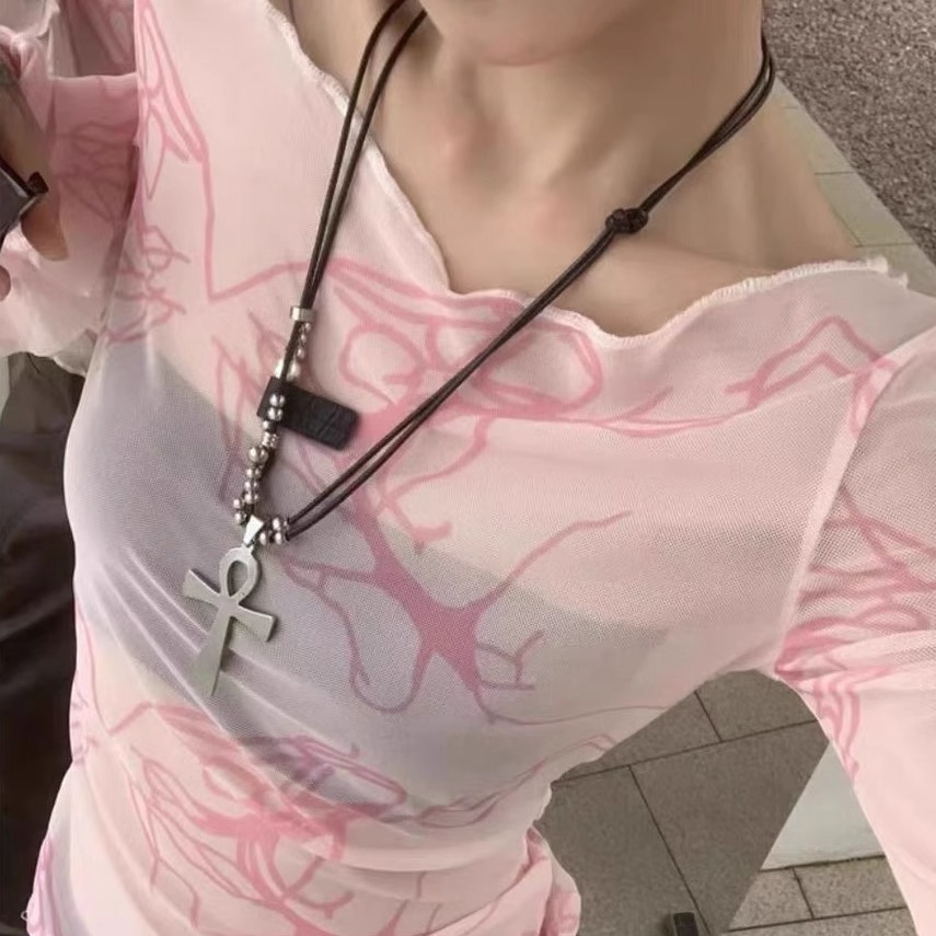 Y2K Heavy Industry Cross Necklace Millennial Hot Girl Sweet Cool Subculture Wandering Wasteland Punk Goth Niche Trend