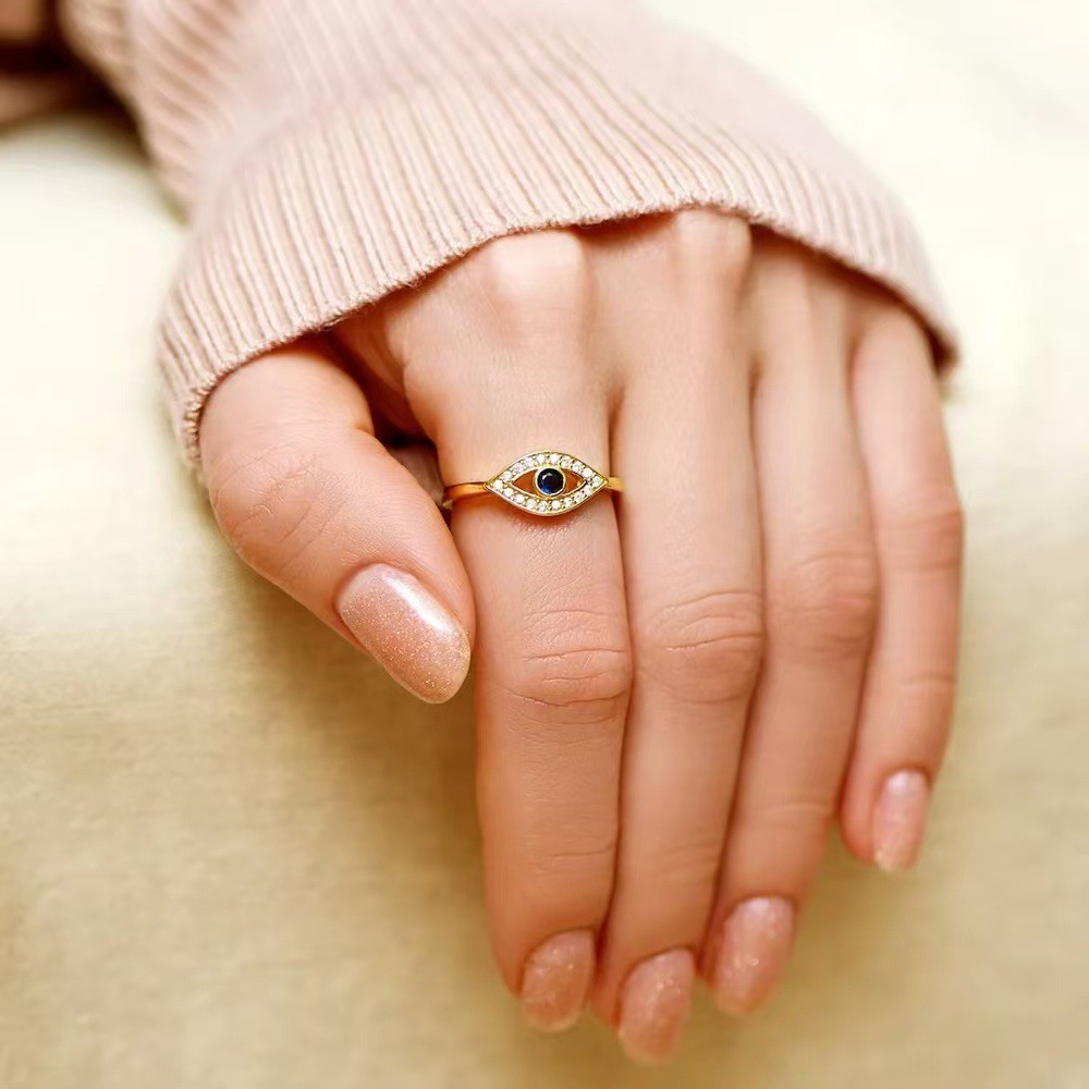 European and American Hot-Selling Copper-Plated 18K Gold Devil Evil Eye Ring Women's Personalized Versatile Open Index Finger Ring Hand Jewelry