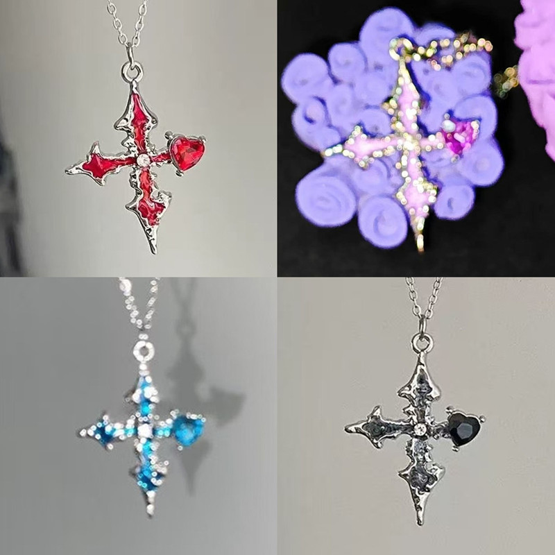 New Saint's Mark Dark Style Purple Love Cross Necklace Exploding Exquisite Fashionable High-Looking Versatile Clavicle Chain