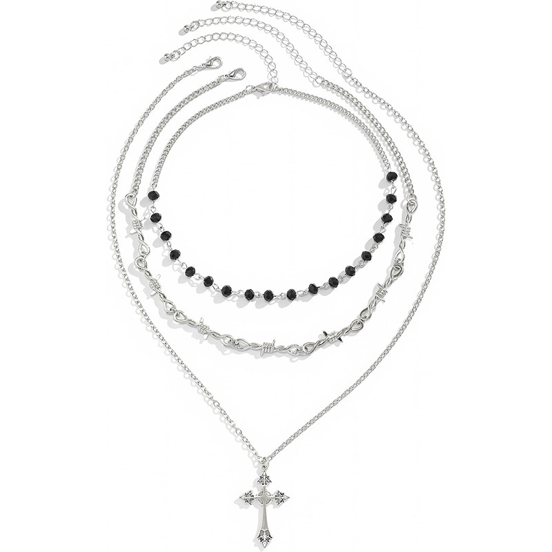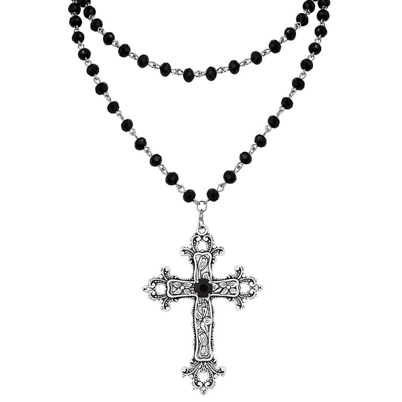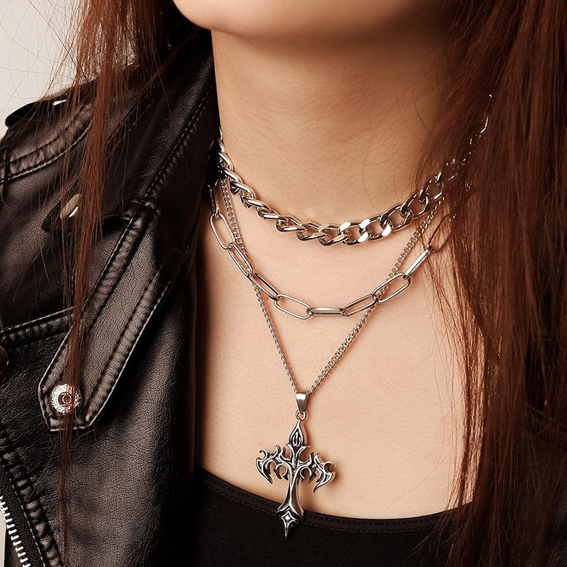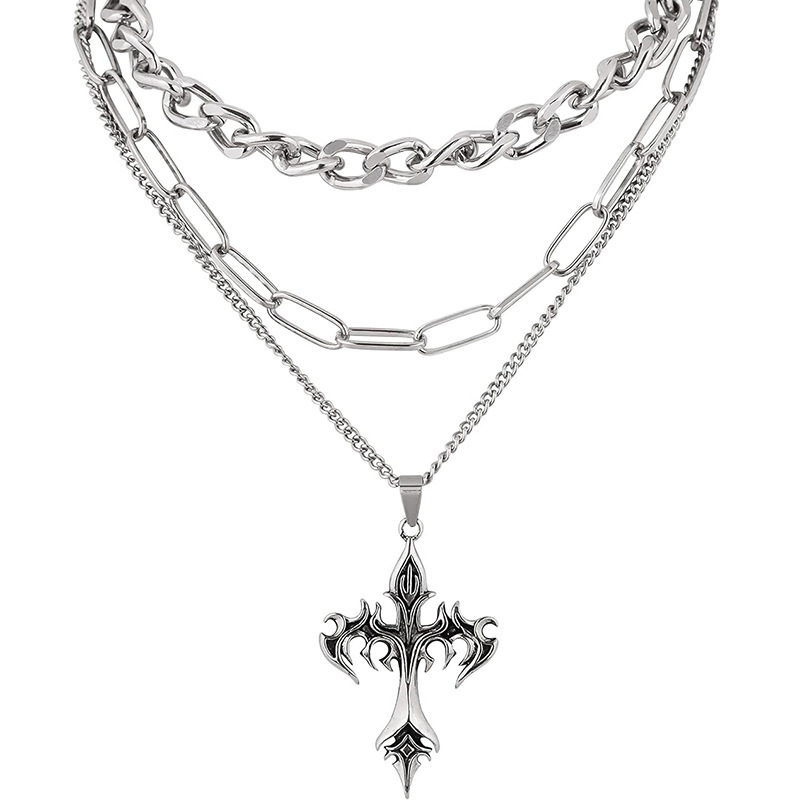 Cross-Border Men's and Women's Clavicle Chain Hip-Hop Personalized Cross Pendant Sweater Chain Alloy Necklace Gothic Style Clavicle Chain