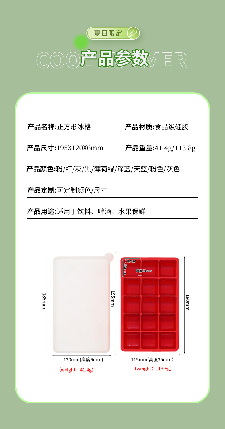 15 Grids Silicone Ice Tray Square Ice Cube Mold Food Grade Whiskey Ice Tray Square Cold Drink Ice Box