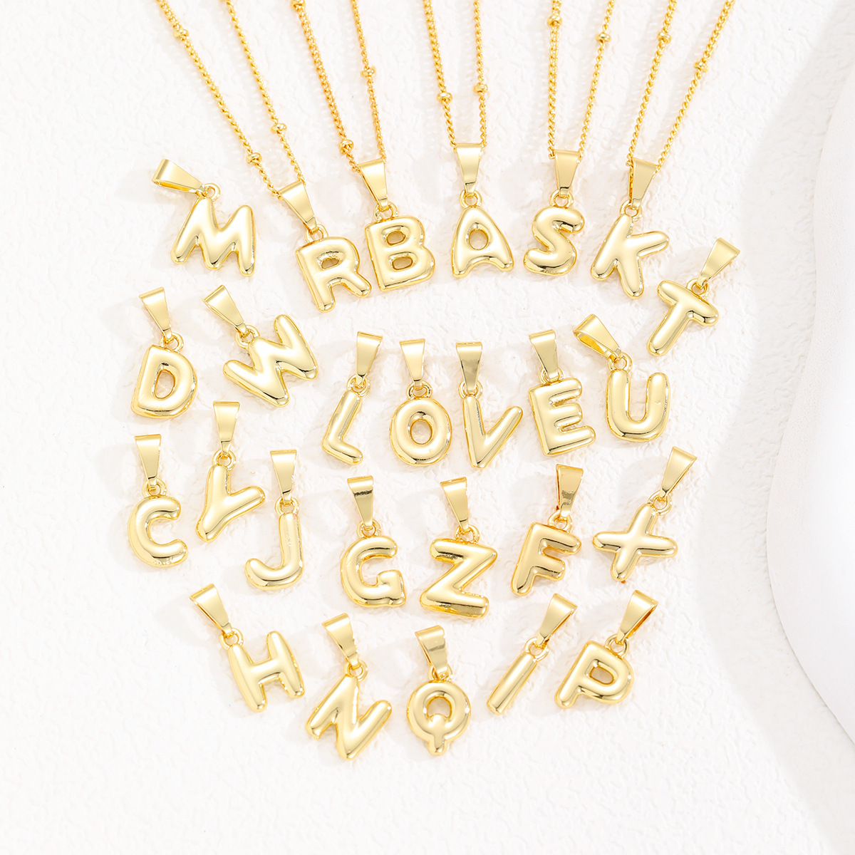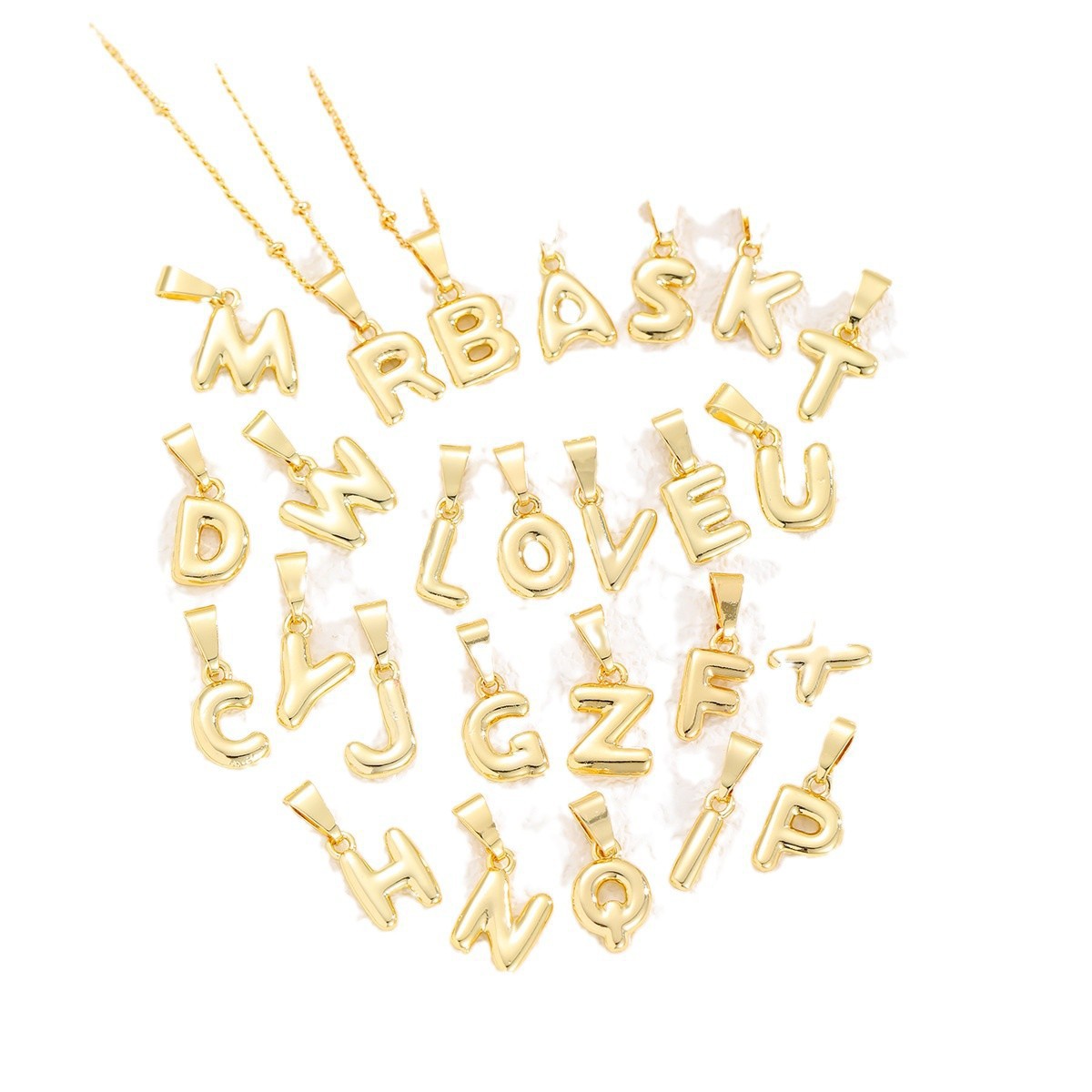 Amazon's Hottest Brass Plated 18K Gold Mini Bubble Letter Pendant DIY Personalized 26 English Letter Necklace