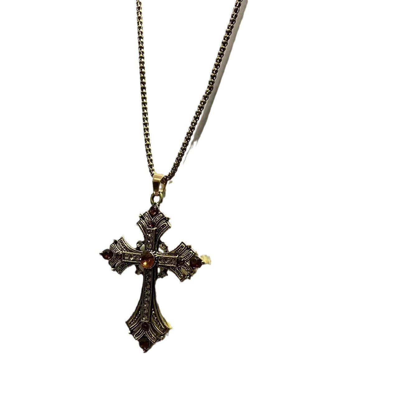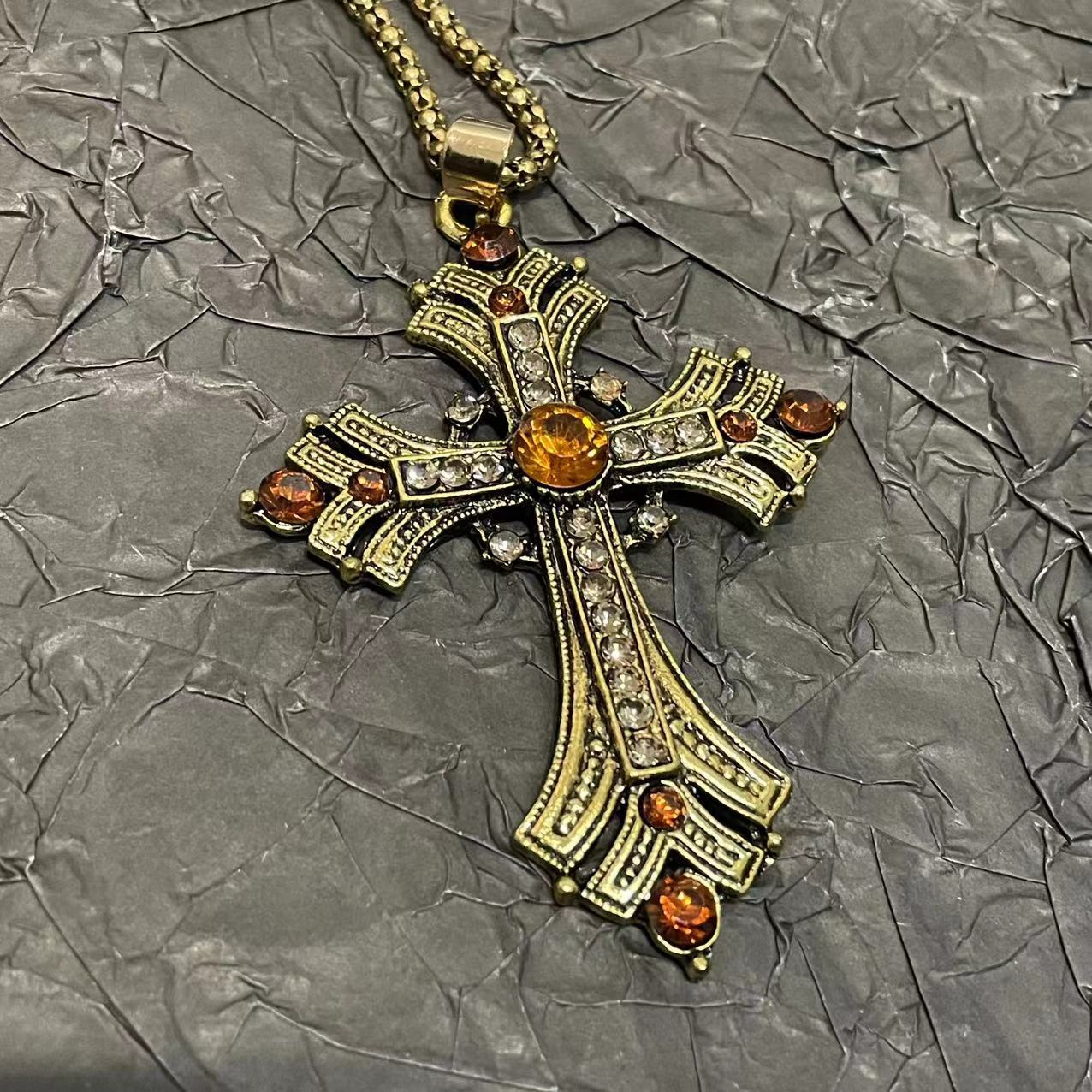Golden Medieval Subculture Cross Rhinestone Necklace Millennium Sweet Cool Style Long Clavicle Chain Hot Girl