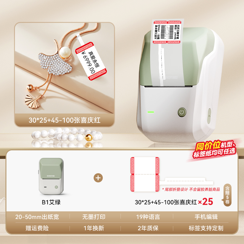 Specification: B1 ai green + free 1 roll [xiangyun red t-shaped horizontal version] label + post the order and get 1 more roll