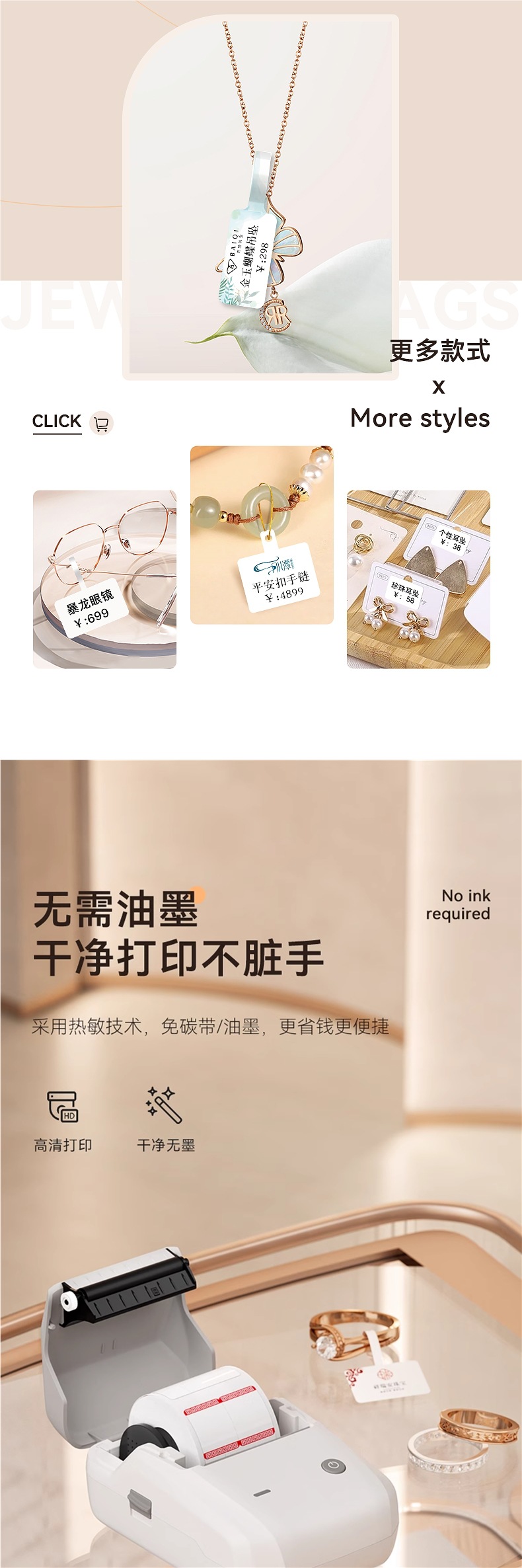 Specification: [10 customized packages] b1 ailu + 10 rolls of customized labels + free 1 roll of white f-type jewelry + 1 more roll for ordering