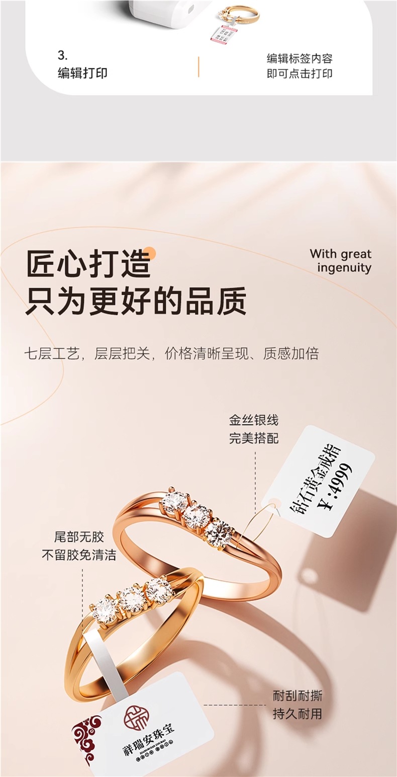 Specification: [anti-counterfeiting and anti-tear] m2 machine + free 1 roll of [matte silver anti-tear] jewelry label (replaceable) + free 1 roll of ribbon + portable bag