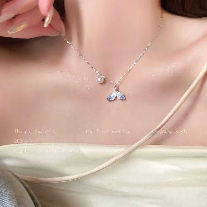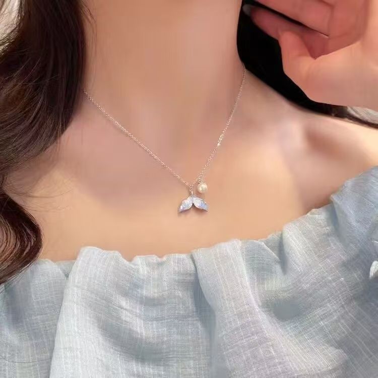 Shark Love~Light Luxury Niche Blue Fishtail Pearl Necklace Women's 2025 New High-End Clavicle Chain Accessories