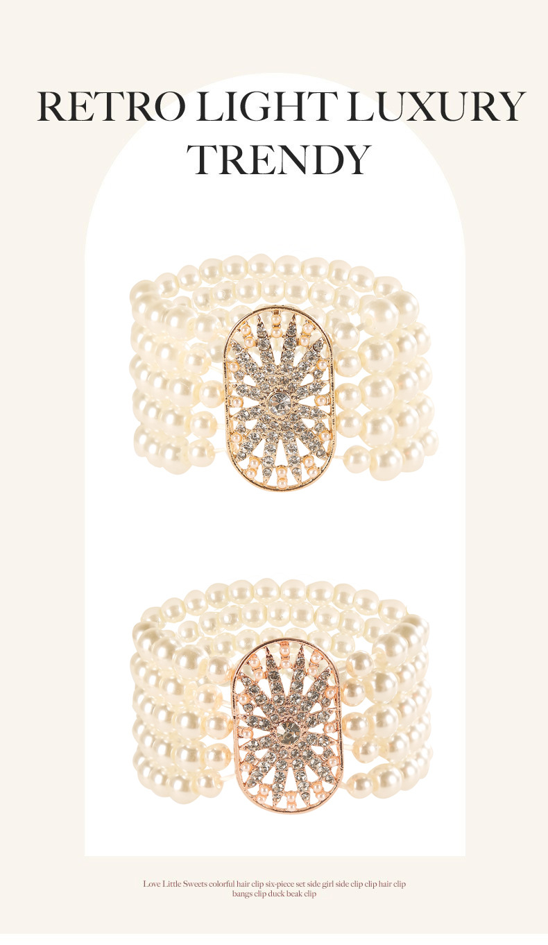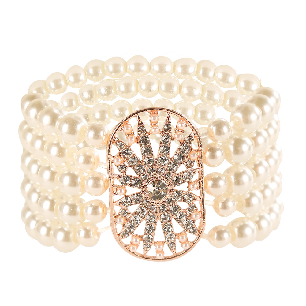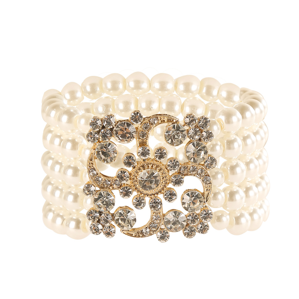 Korean Fashion Women Three-Layer Rhinestone Pearl Bracelet Elegant Flash Diamond Multi-Layer Stretch Bracelet Dropshipping E043