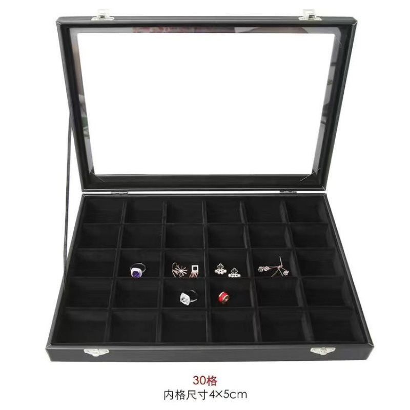Color: Black leather 30 grid box glass lid (35*24cm)