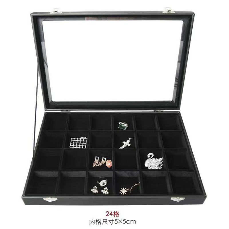 Color: Black leather 24-compartment box glass lid (35*24cm)
