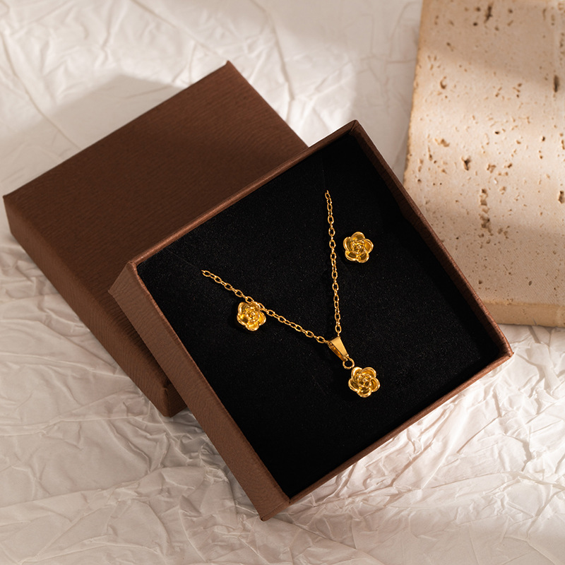 Titanium Steel Set Necklace Earrings Stainless Steel Jewelry Set Gift Box Set